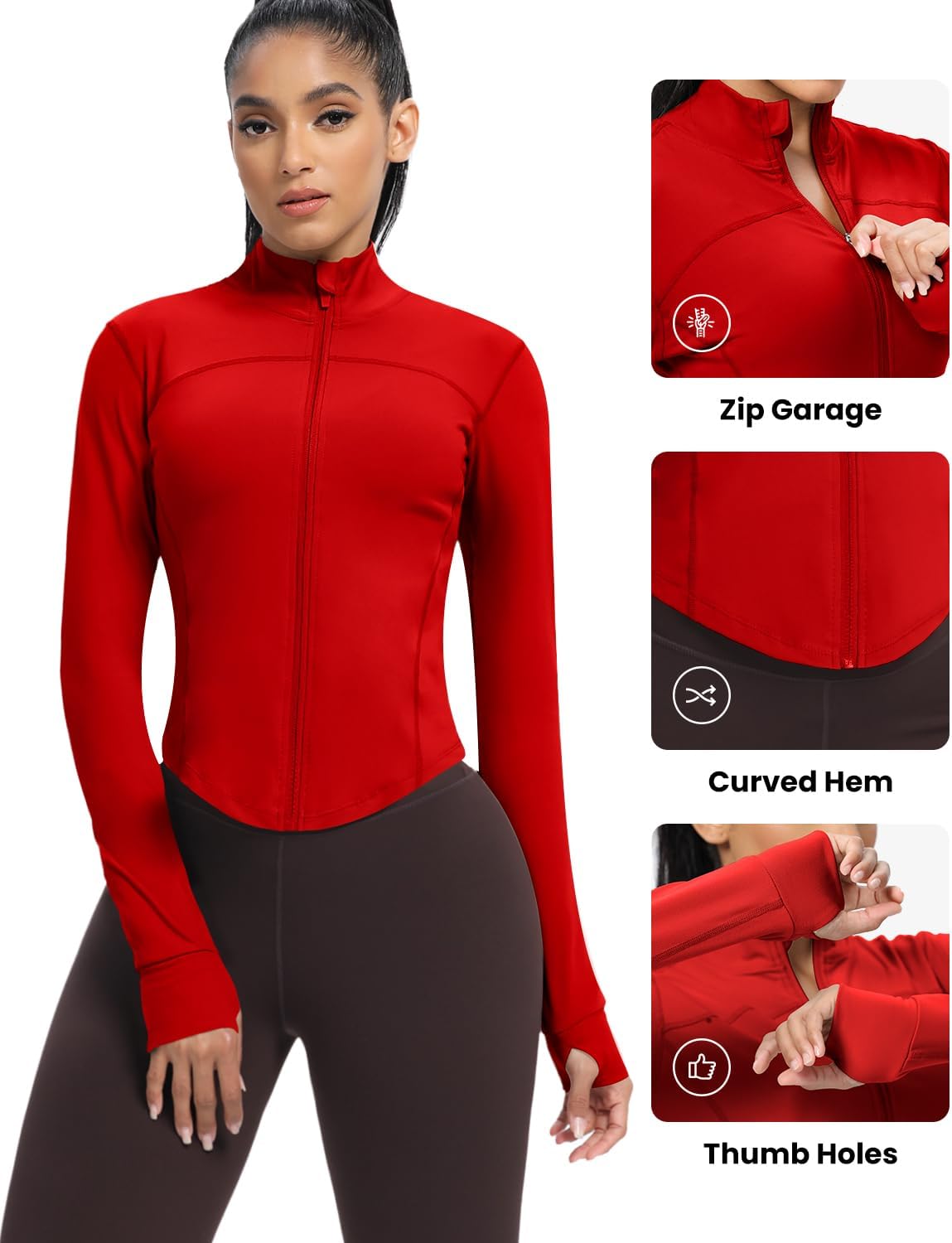 AVGO Women’s Cropped Running Workout Jackets Zip Slim Fit Athletic Tops with Thumb Holes