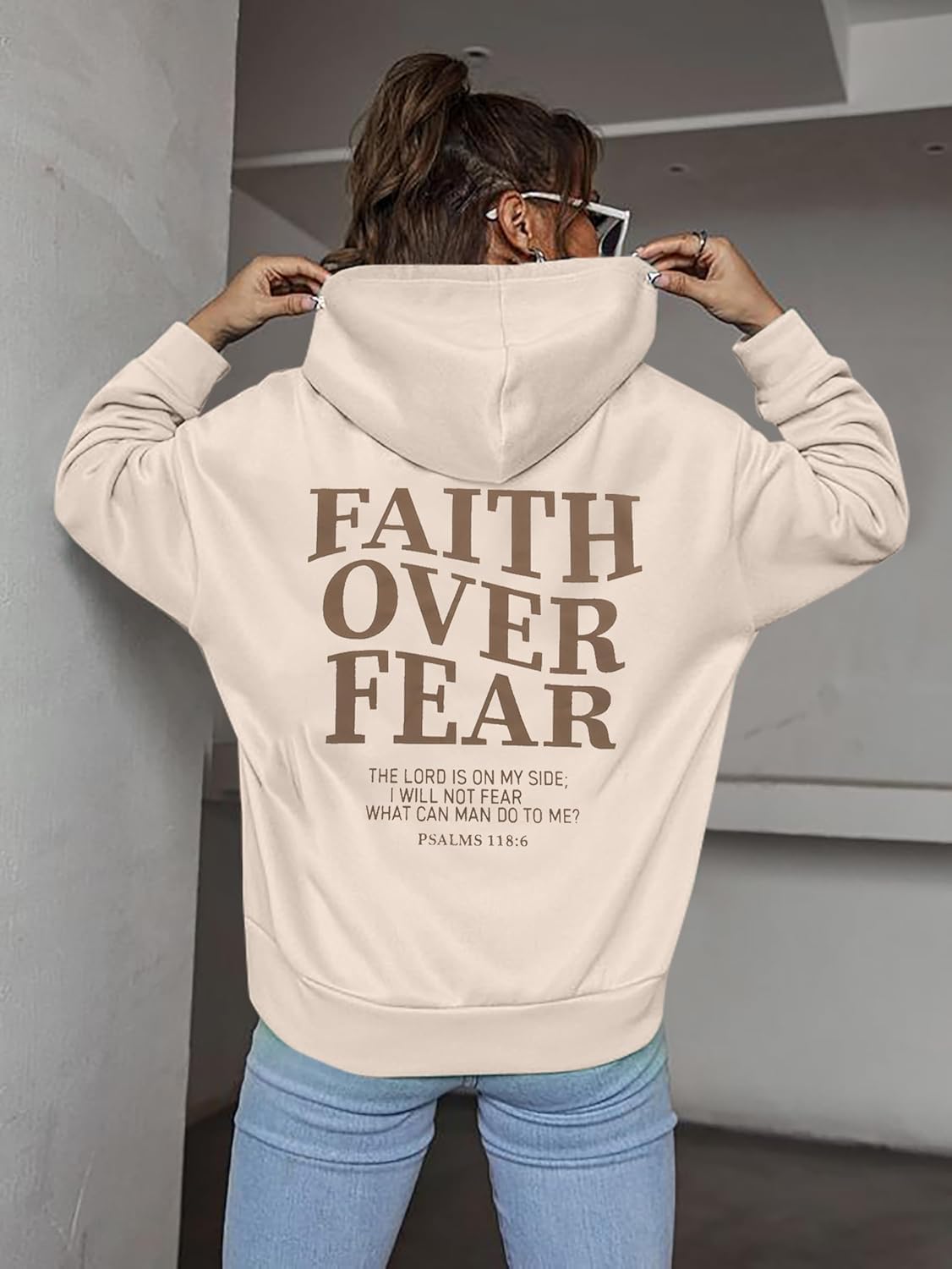 BANGELY Faith Over Fear Hoodie Women Christian Sweatshirt Graphic Christian Religious Sayings Sweater Bible Pullover Tops