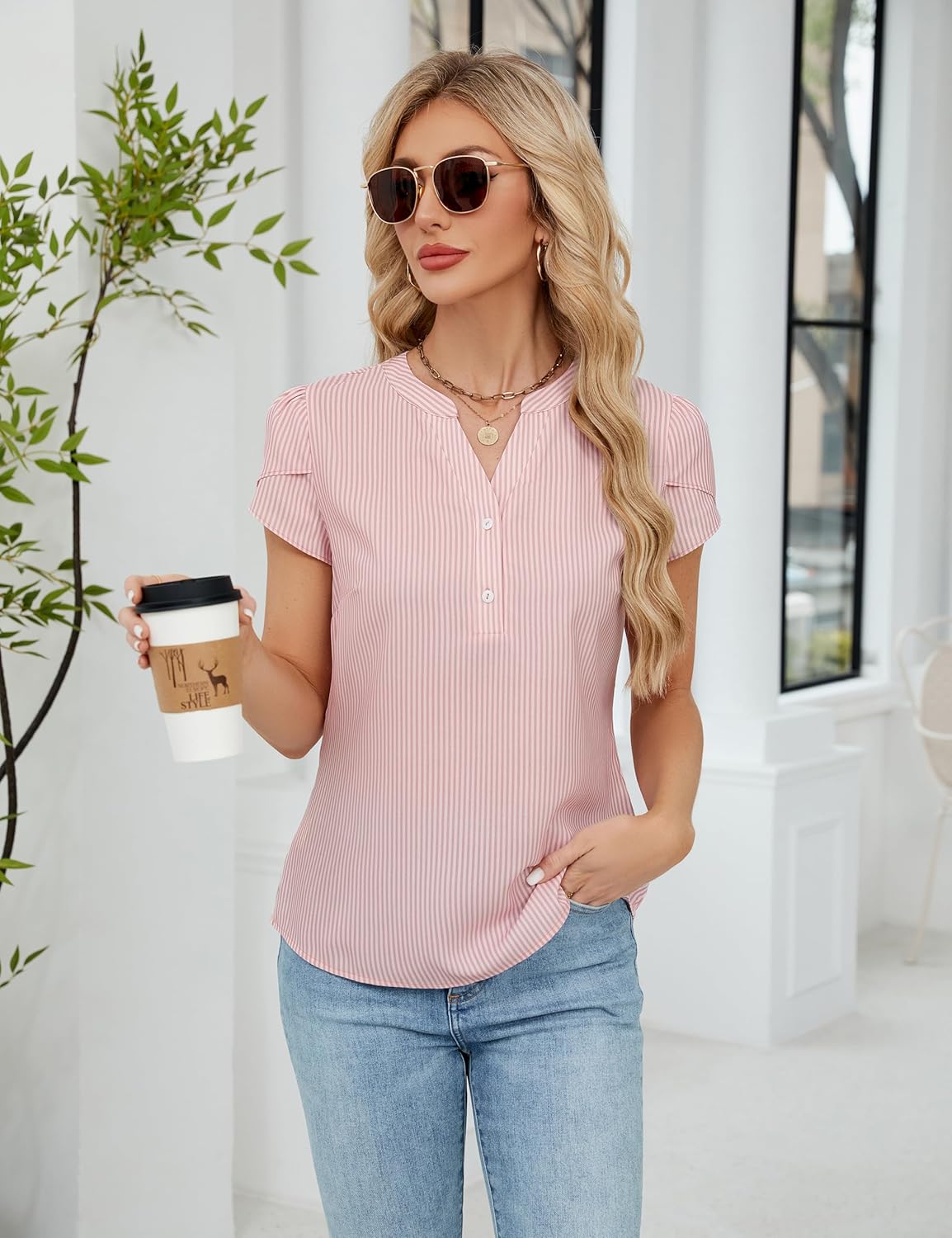 Blouses for Women Dressy Casual Blooming Jelly Women’s Dressy Short Sleeve Shirts Customer Reviews——Love the fabric