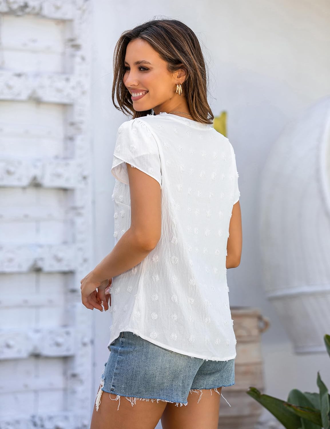 Blooming Jelly Women’s Dressy Casual Tops Business Work Blouses White Button Down Shirts Cap Sleeve V Neck Tshirt