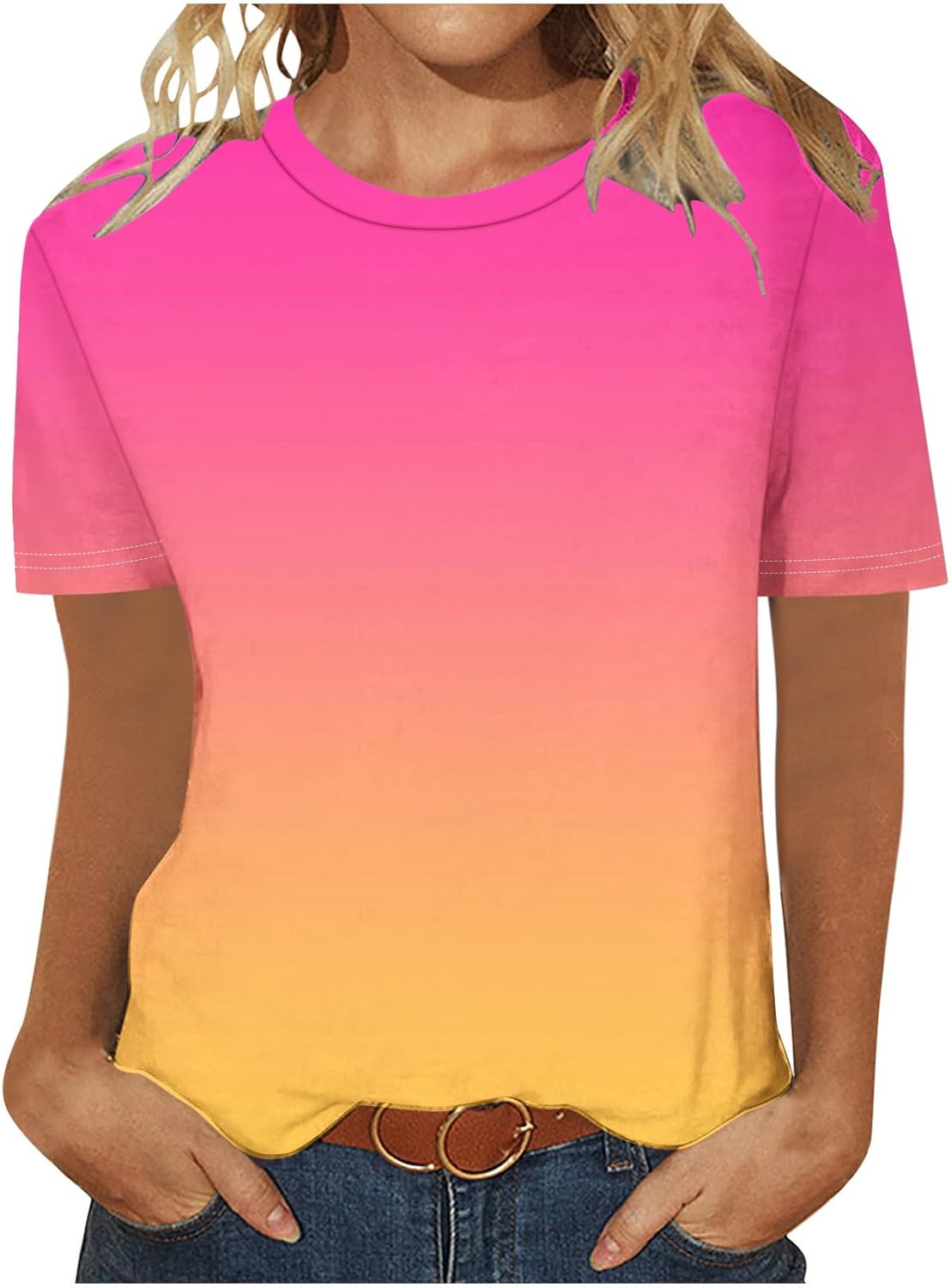 Ceboyel Womens Ombre Color Summer Tops Short Sleeve Tee Shirts Dressy Causal Cute Tshirts 2024 Trendy Vacation Clothes