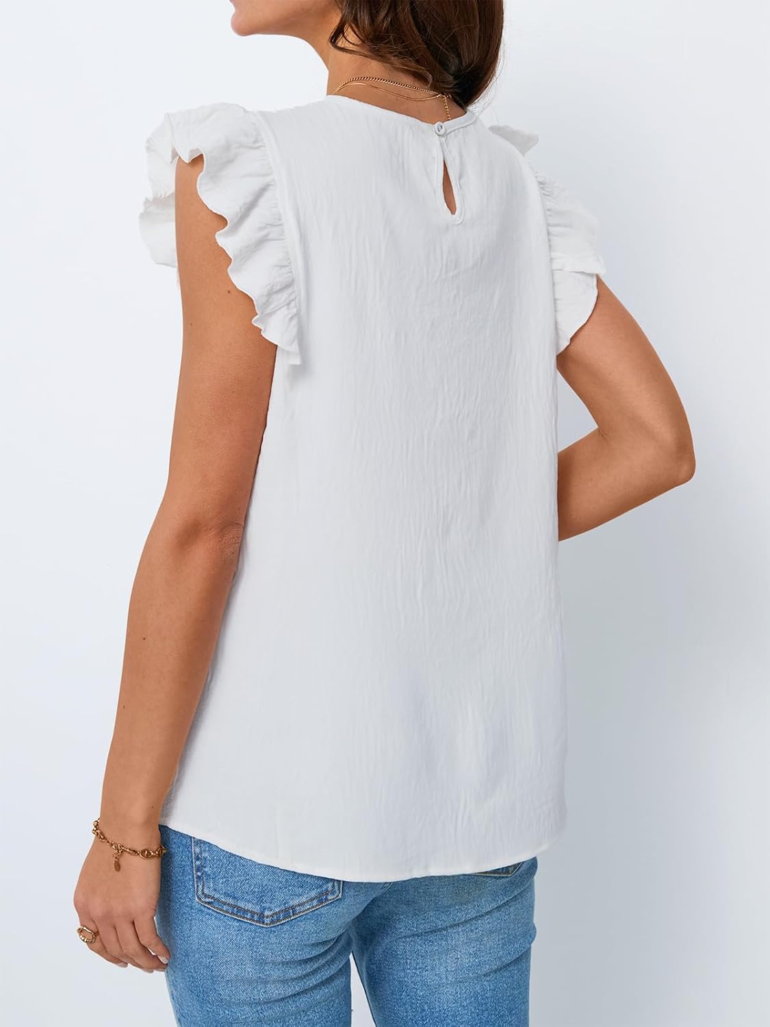 Dealmore Womens Dressy Casual Blouses Cap Ruffle Sleeve Summer Tops Business Work T Shirts Basic Pleated Tunic 2025