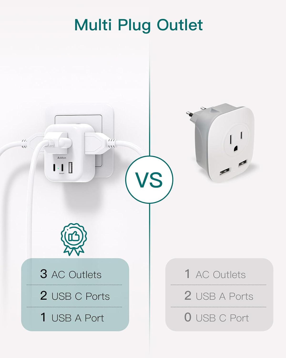 Be the first to review “European Travel Plug Adapter, Addtam International Power Adapter with 3 Outlets 3 USB Charging Ports(2 USB C), Type C Adapter Travel Essentials to Most Europe EU Spain Italy France”