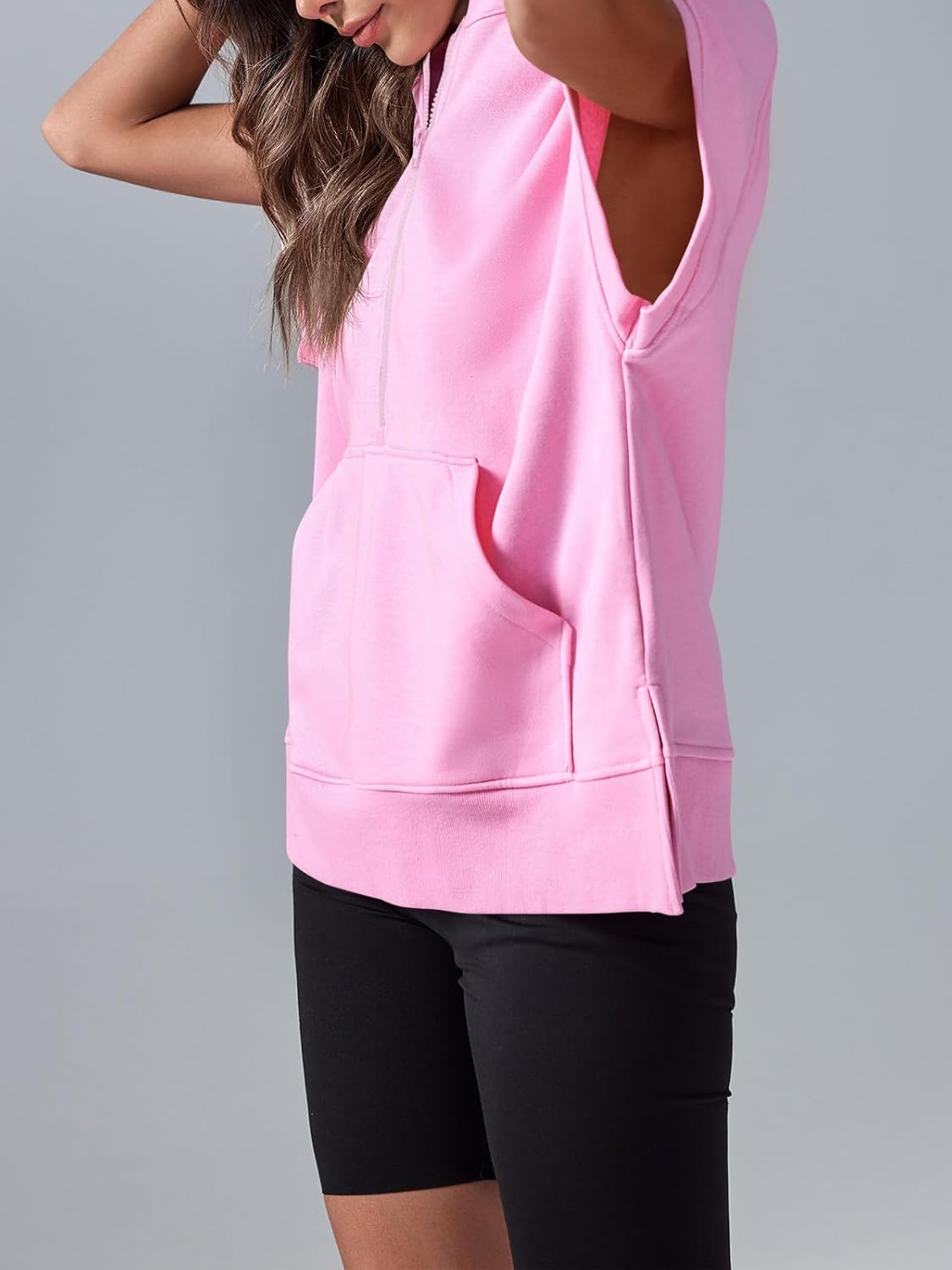 Fisoew Womens Oversized Half Zip Hoodies Short Sleeve Casual Sweatshirts Pullover Tops with Pockets