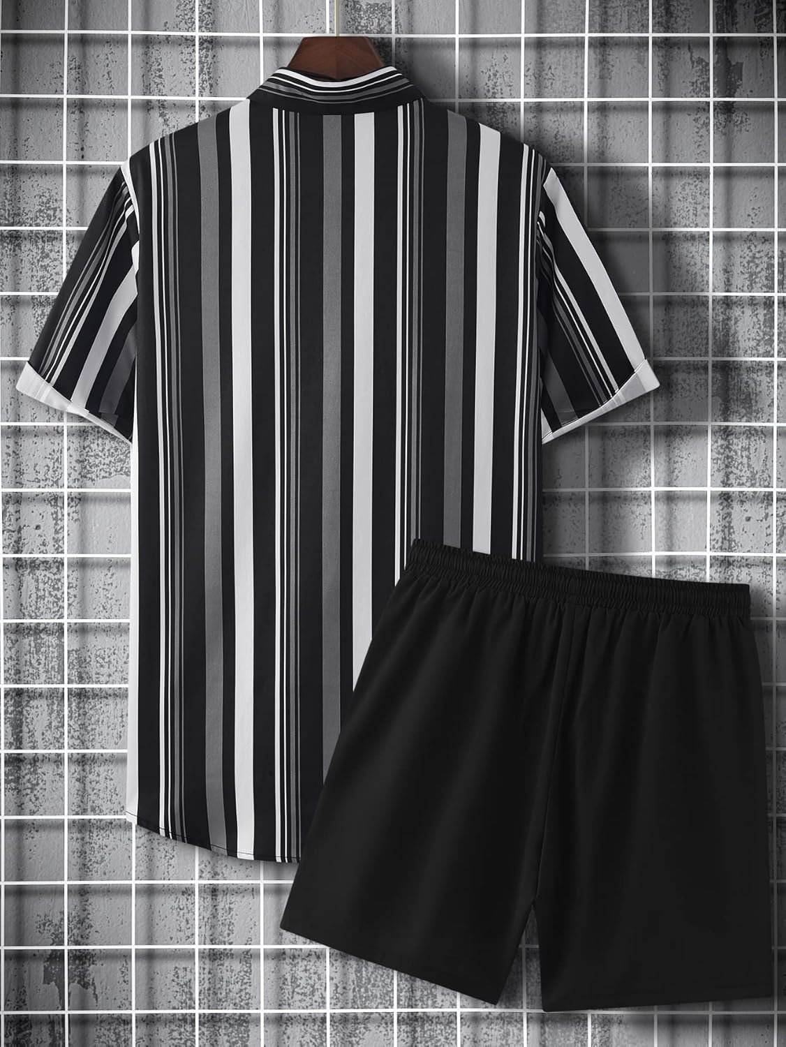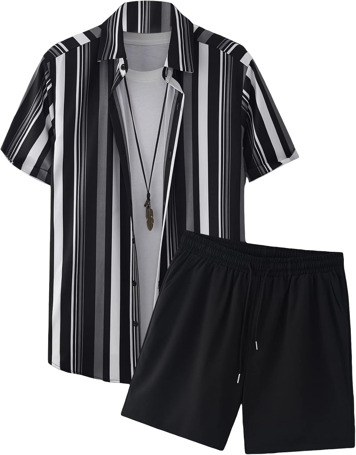 Floerns Men’s Two Piece Outfit Printed Shirt Top and Drawstring Waist Shorts Set