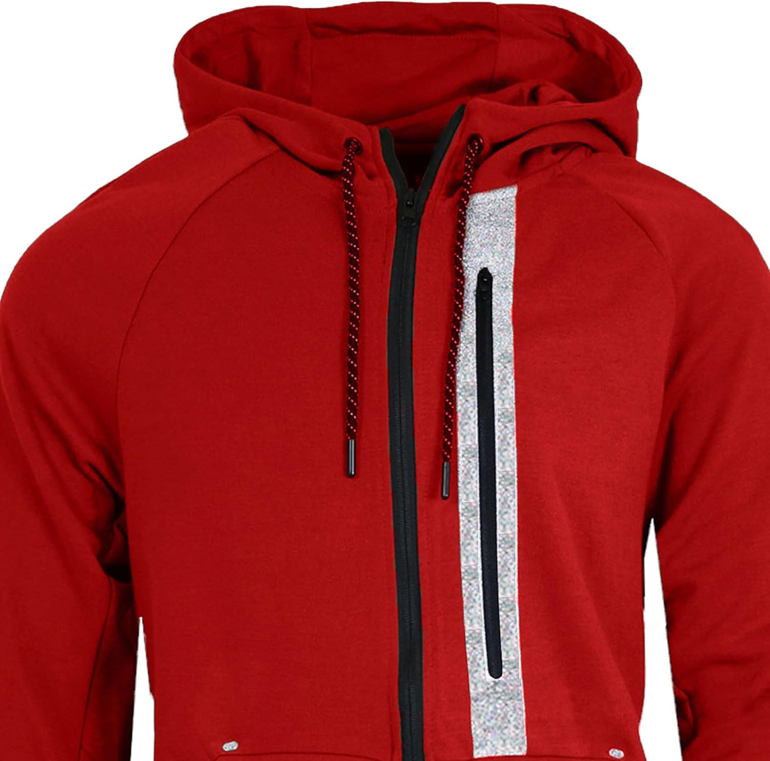 Galaxy by Harvic Men’s Modern Fit Full Zip Tech Fleece Hoodie and Jogger 2-Piece Set with Reflective Trim Design