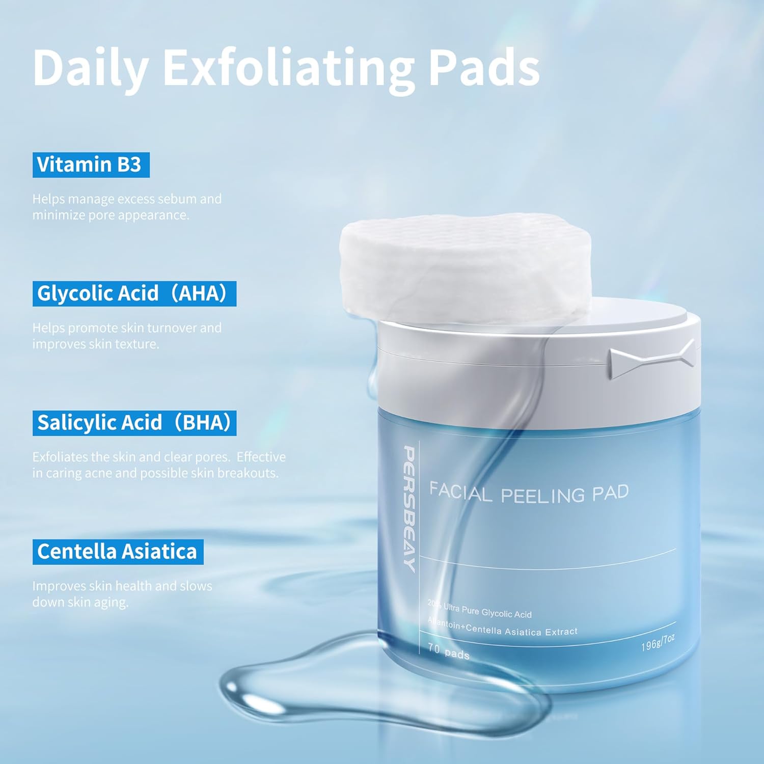 EFFICIENT & LONG-LASTING RESULTS: Focusing on a balance of active ingredients and long-lasting efficacy, this is more than just a temporary improvement. Our large capacity of 70 exfoliating pads will give you enough for 35 days of morning and evening use to keep your skin looking radiant with long-lasting health and clarity.Use our exfoliating face pads to enjoy the smooth skin you deserve.