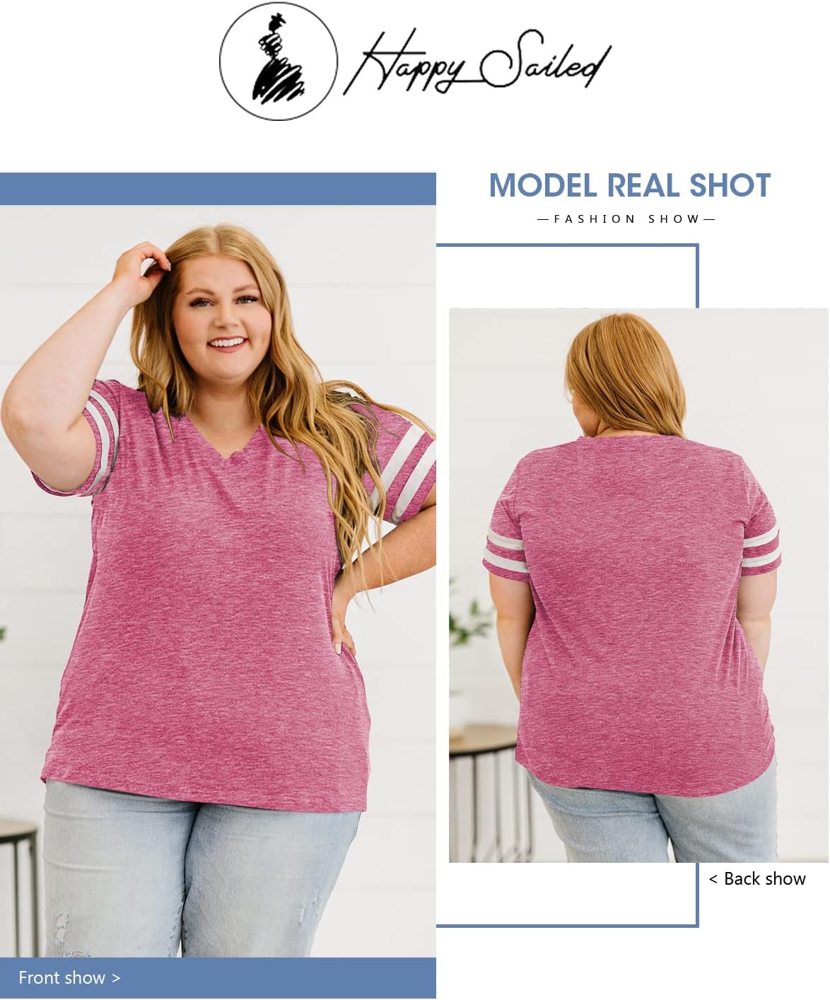 Happy Sailed Womens Plus Size Short Sleeve Striped Shirts Video Shows: