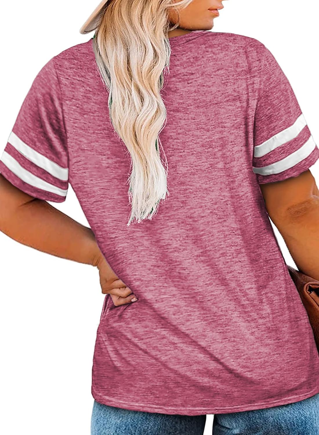 Womens Plus Size V Neck Short Sleeve Striped Loose Casual Shirts