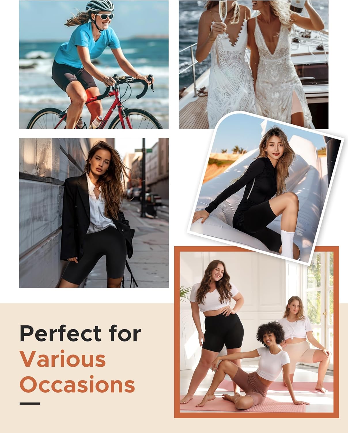 Customers find these thigh slimmers comfortable under dresses, particularly in warmer weather, and appreciate their quality and lightweight design. They are perfect for wearing under skirts and dresses, and customers like that they stay in place without sticking to dresses. The fit and rollability receive mixed feedback – while some say they don’t roll down or ride up, others report they roll up on the legs. The stretchiness also gets mixed reviews, with some finding them super stretchy while others note they don’t provide enough compression.