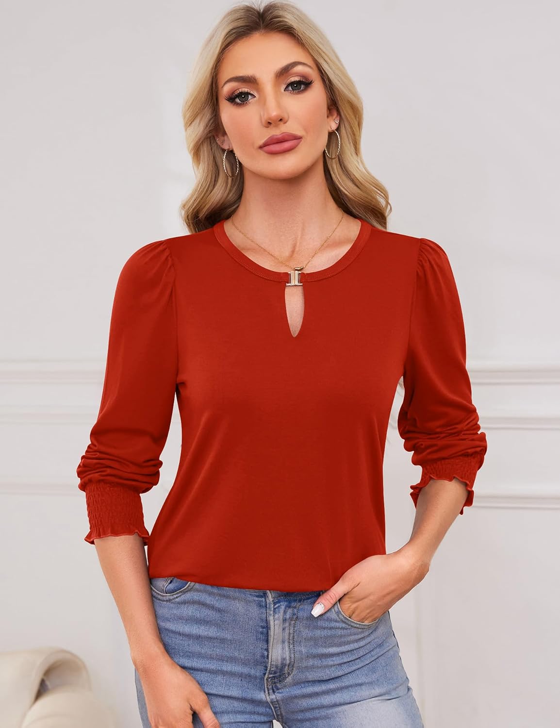 Kistore Women’s Long Sleeve Tops V Neck Dressy Casual Keyhole Blouses Tunic Tops Shirts 2024