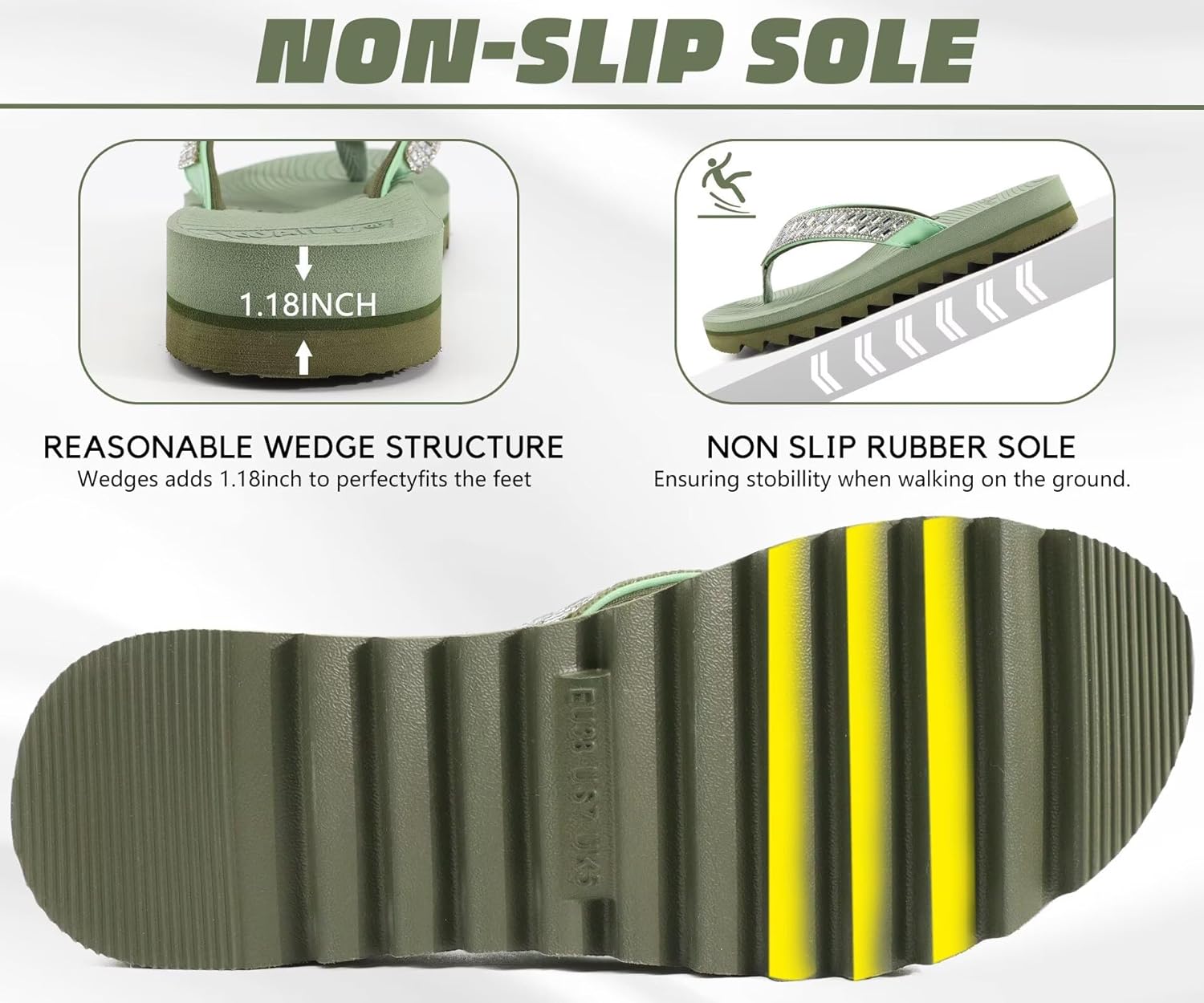 Customers find these flip flops comfortable, with one describing them as the “comfiest flip flops ever.” They appreciate the arch support and perfect fit. They like the bling design, with one customer specifically mentioning it as “Fun Summer Bling.”