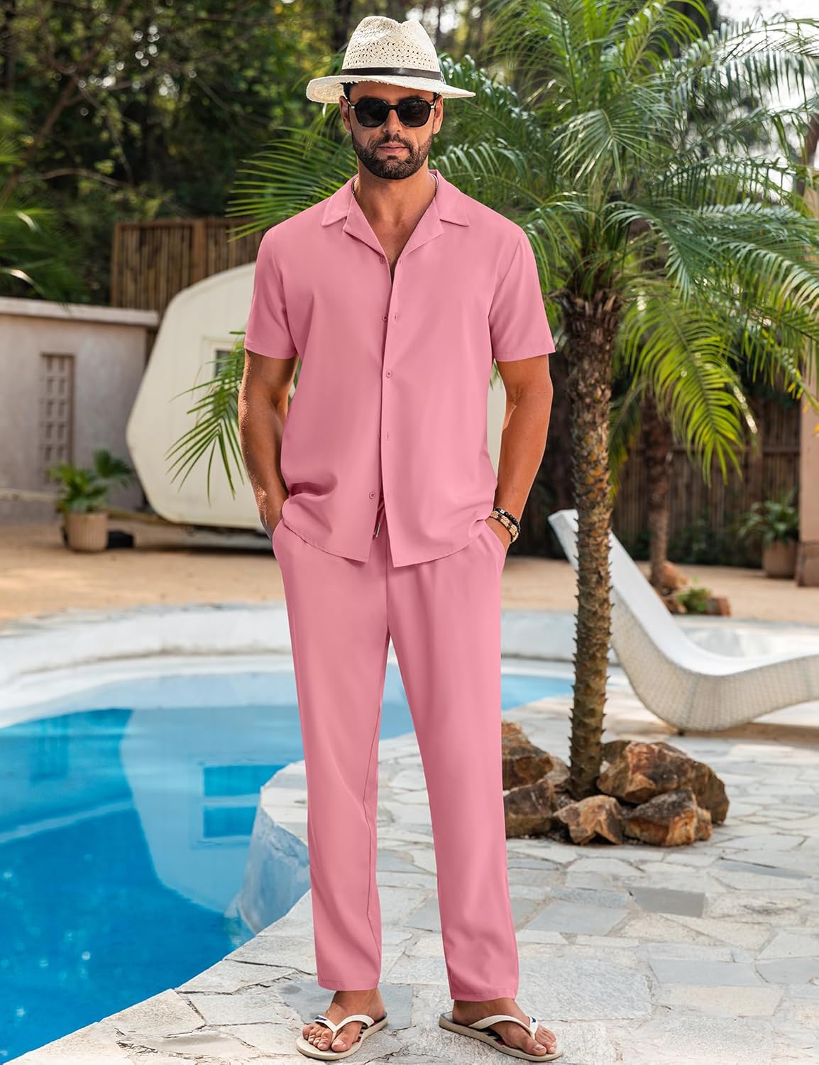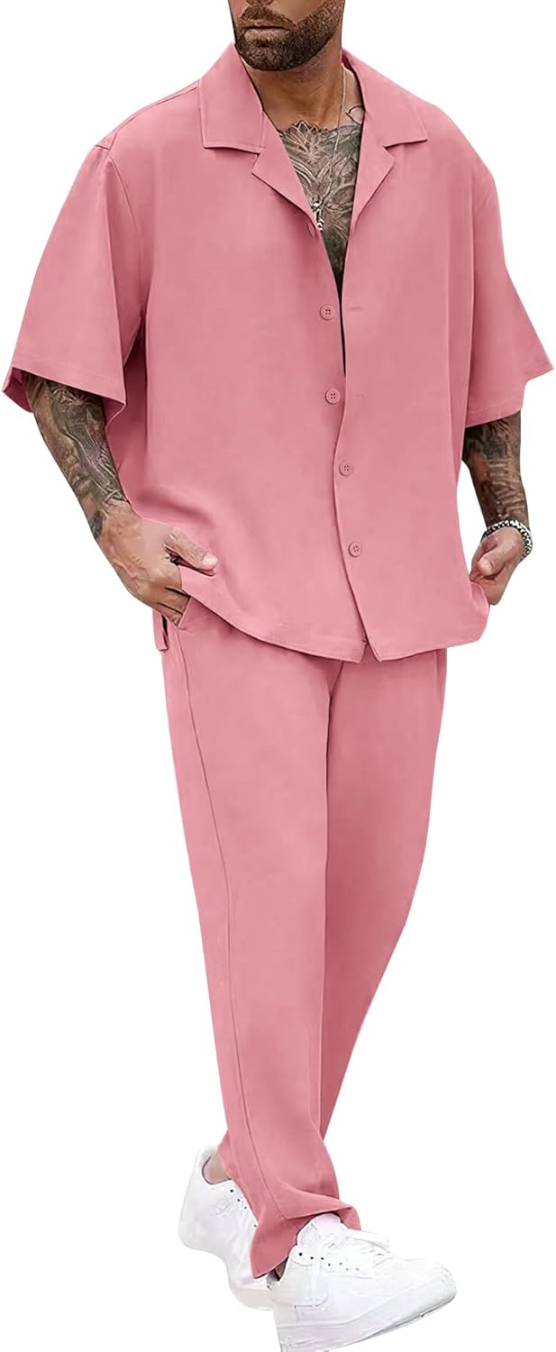 LecGee Men’s Casual Button Down Summer Shirts Long Pant Sets 2 Piece Outfits