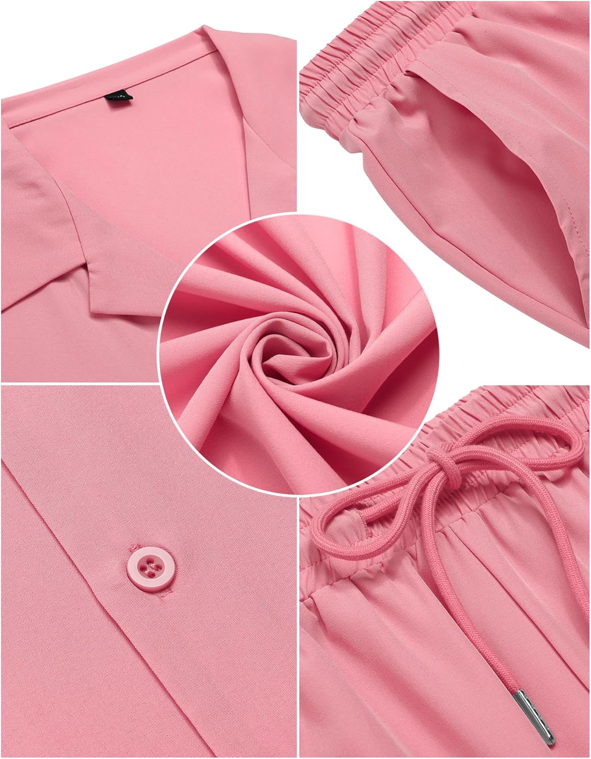 LecGee Men Summer Casual Short Sleeve Pant Sets Solid Button Down Shirt Elastic Pants 2 Piece Outfits Beach Tracksuit