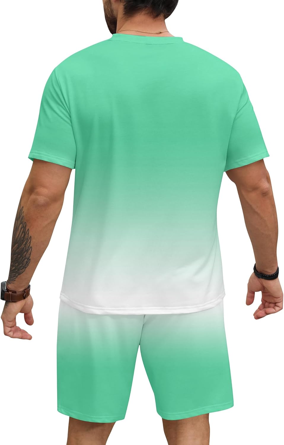 LecGee Men’s Graphic 2 Piece Outfits Tropical Short Sleeve T Shirt Tee Hawaiian Shirts Casual Short Sets Tracksuit