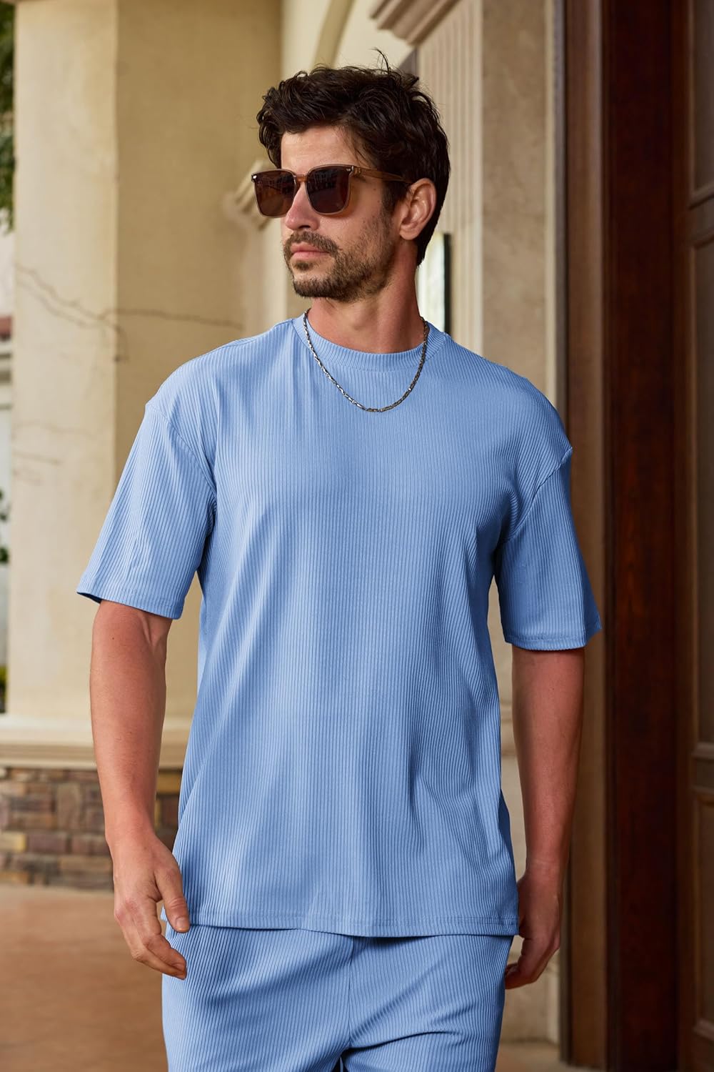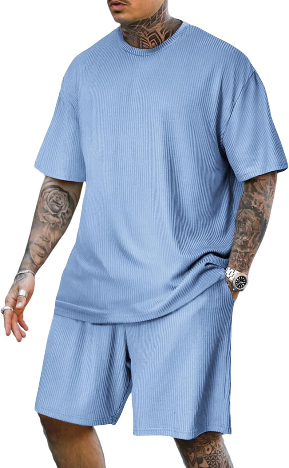 Lexiart Mens Casual 2 Piece Outfits-Short Sleeve Athletic Set Oversize T-Shirts Drawstring Tracksuit Set