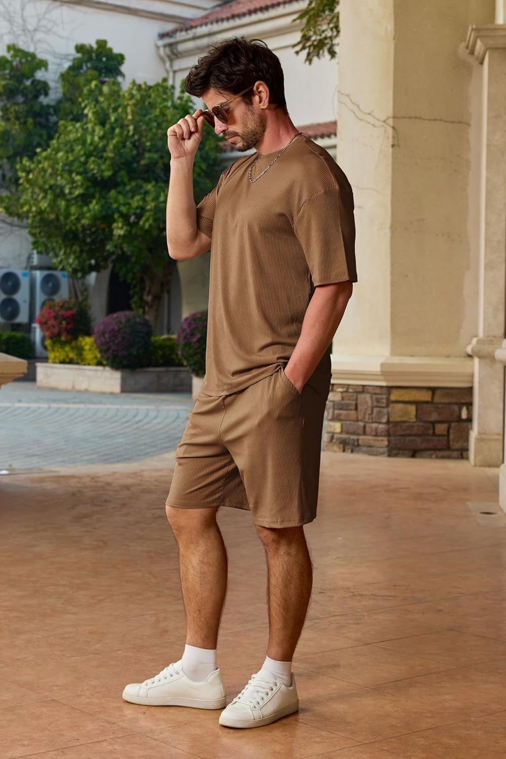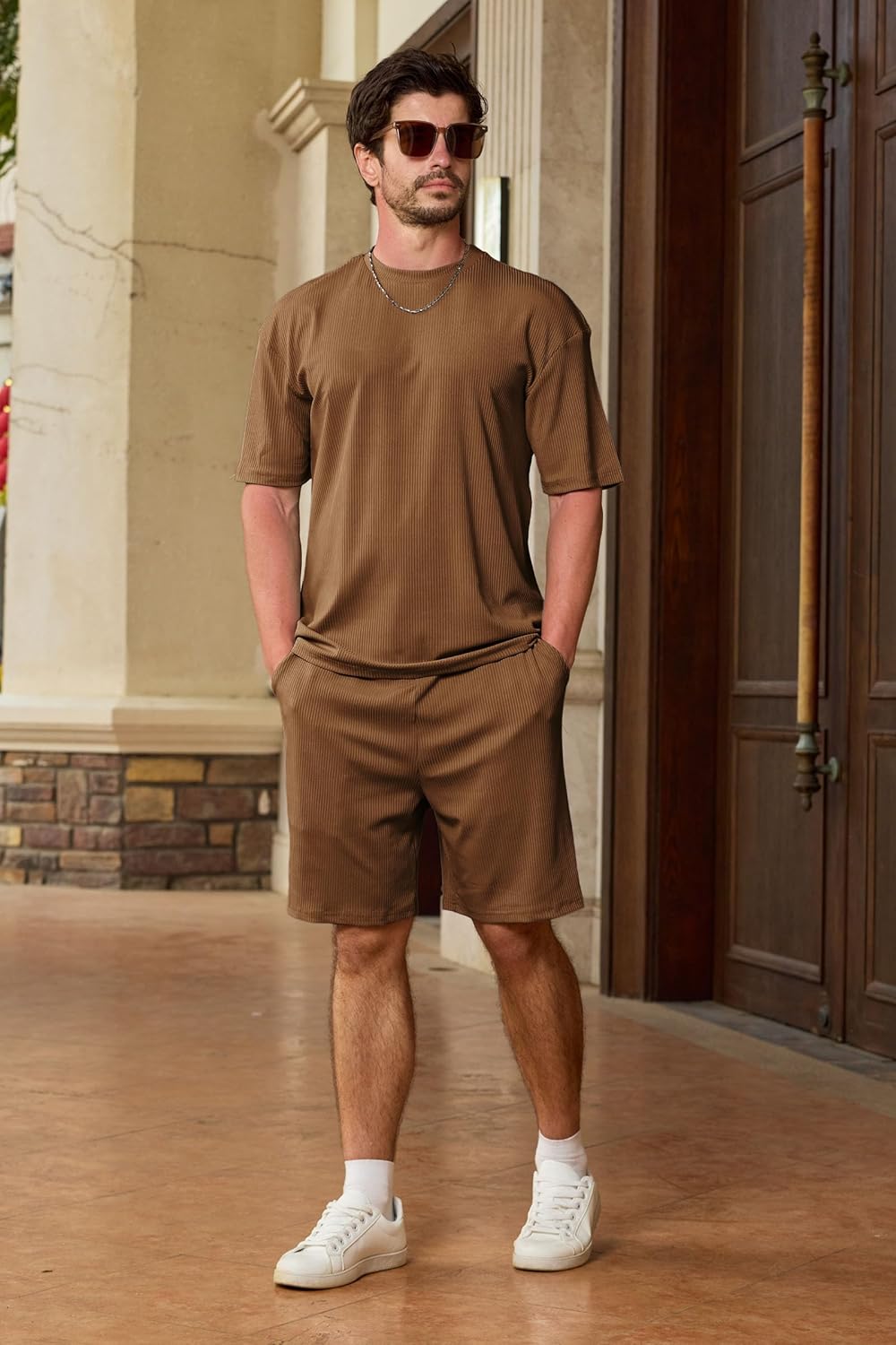 Lexiart Mens Casual 2 Piece Outfits-Short Sleeve Athletic Set Oversize T-Shirts Drawstring Tracksuit Set