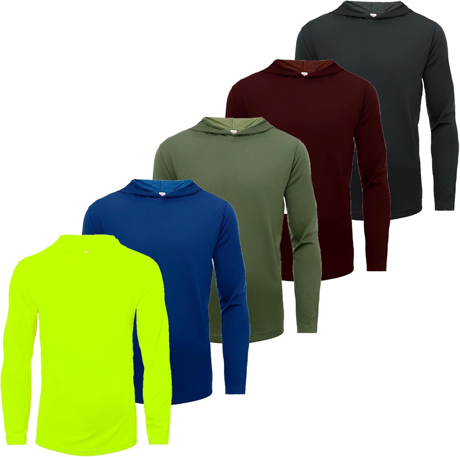 Mens Active Athletic T-Shirts Set Long Sleeve Sun Protective Quick Dry Hoodies Shirt 5 Pack