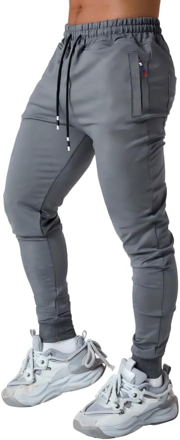 Mens Active Athletic Workout Jogger Sweatpants for Men with Zipper Pocket and Drawstring Size S-2XL