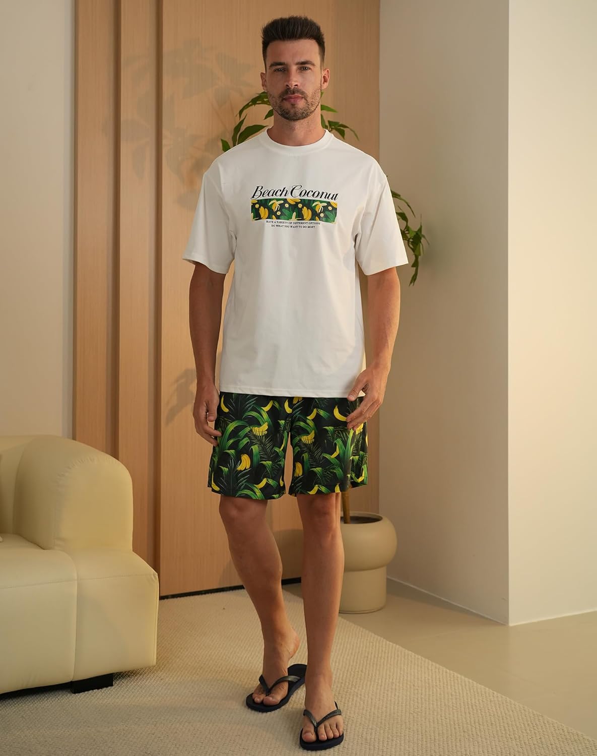 Mens Hawaiian T Shirt 2 Piece Set Short Sleeve Men’s Beach Wear Suit Clothing Shirts