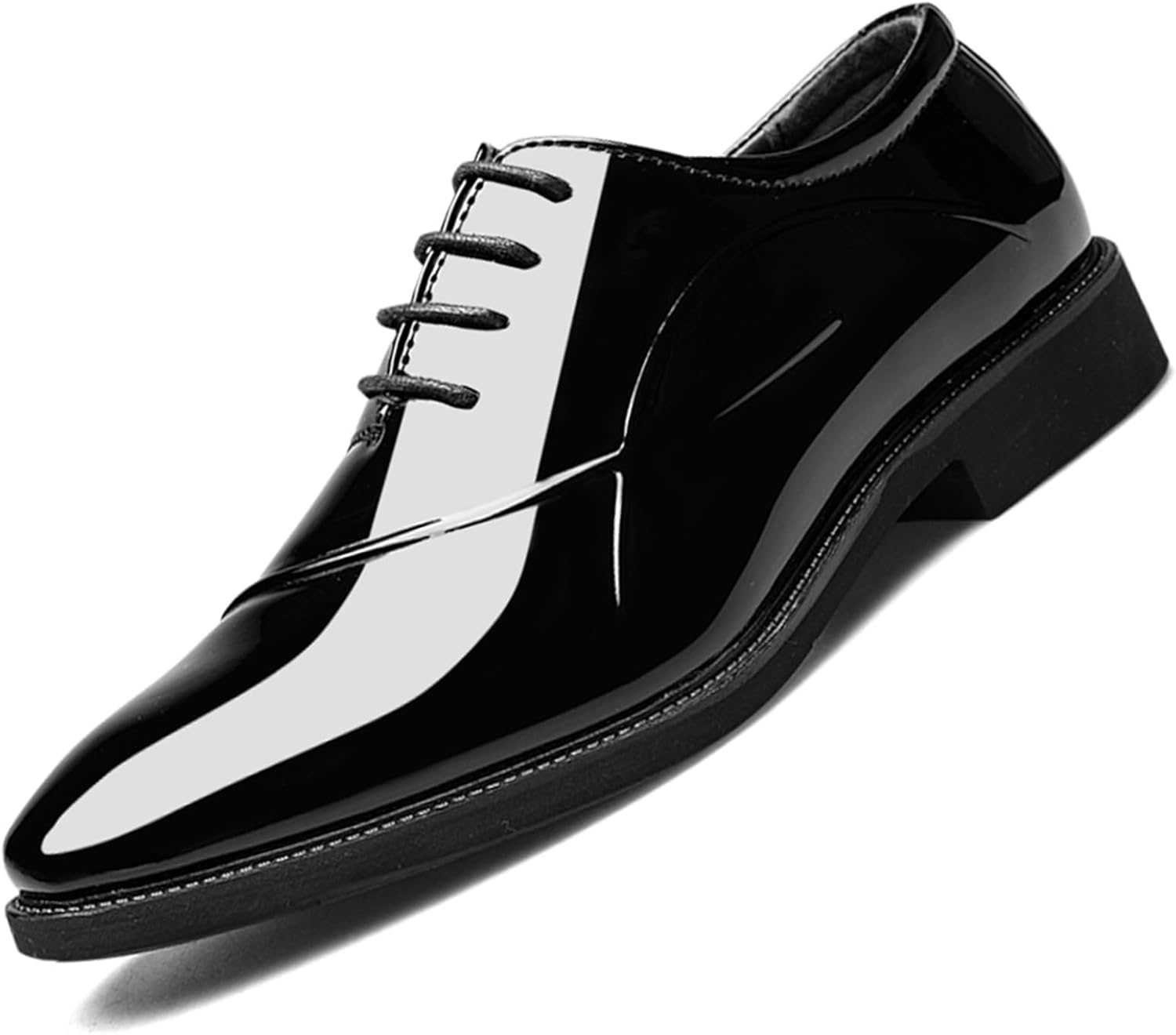 Men’s Trendy High Gloss Patent Leather Business Oxford Lightweight Derby Shoes Formal Lace Up Dress Shoes