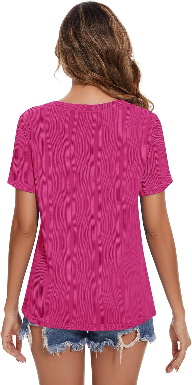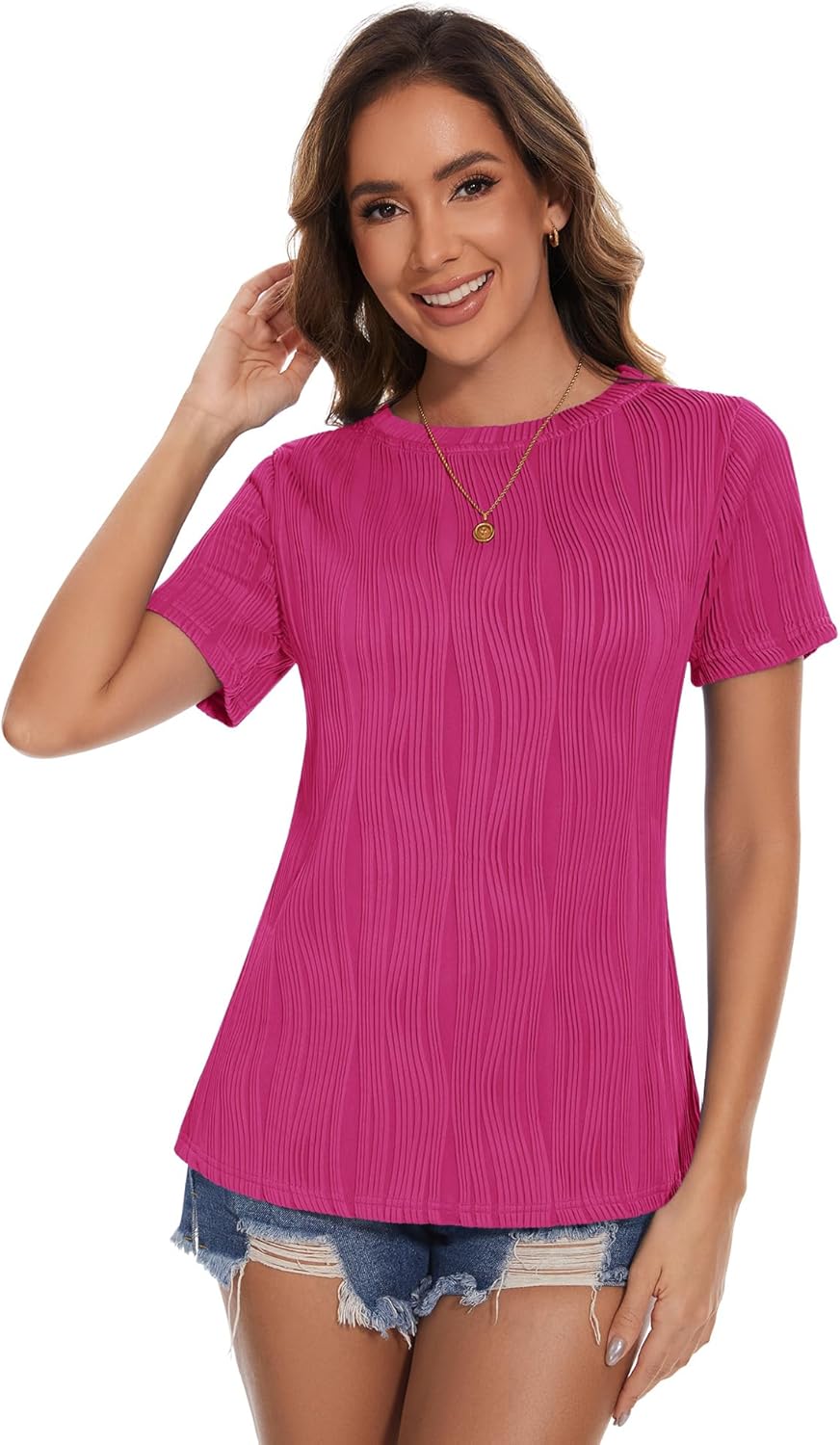 Micoson Women’s Summer Short Sleeve Shirts Fashion Crew Neck T-Shirt Business Casual Textured Tops Basic Plain Tee Blouses