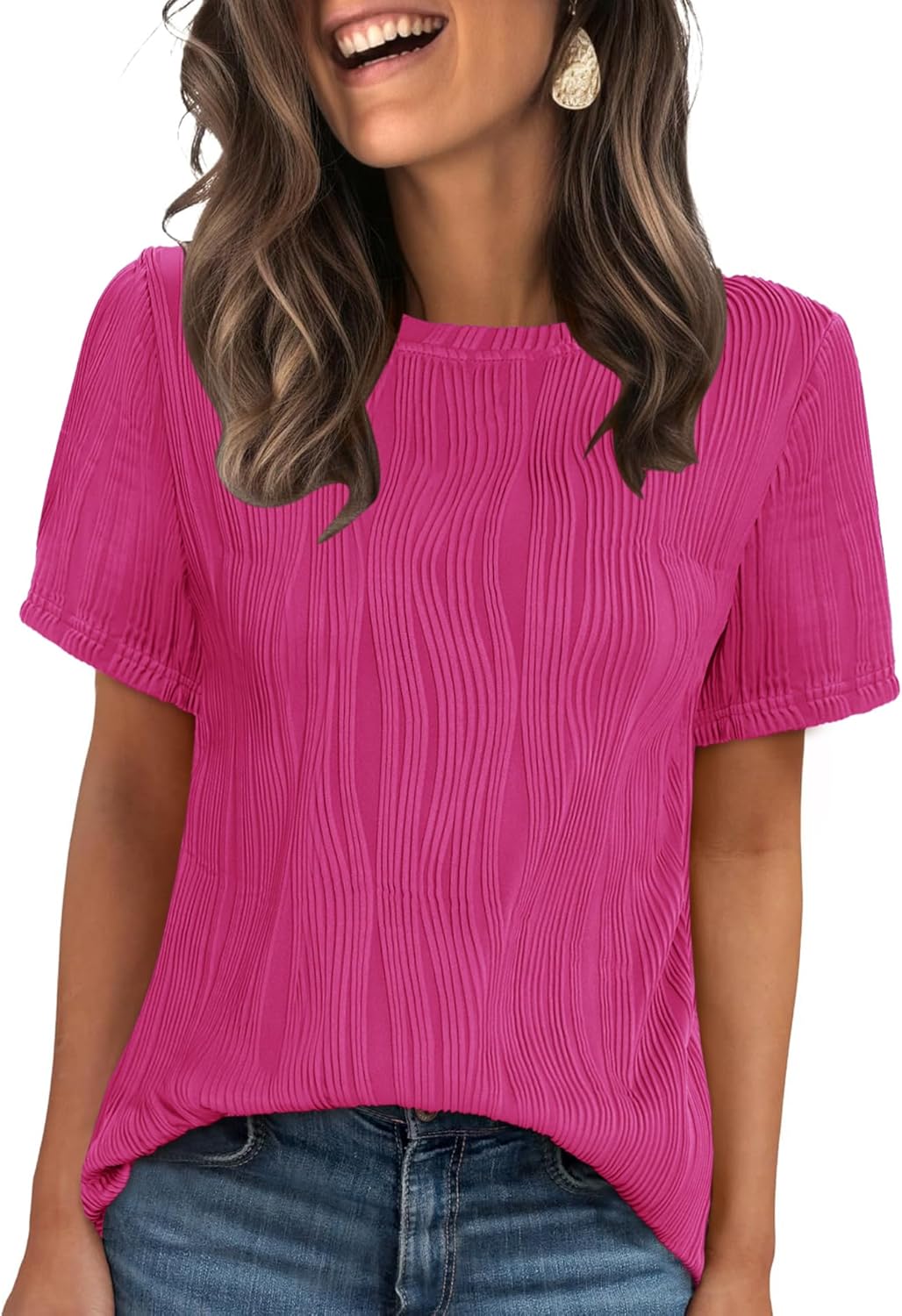 Micoson Summer Crew Neck Tops for Women 2024 Business Casual Textured Shirts