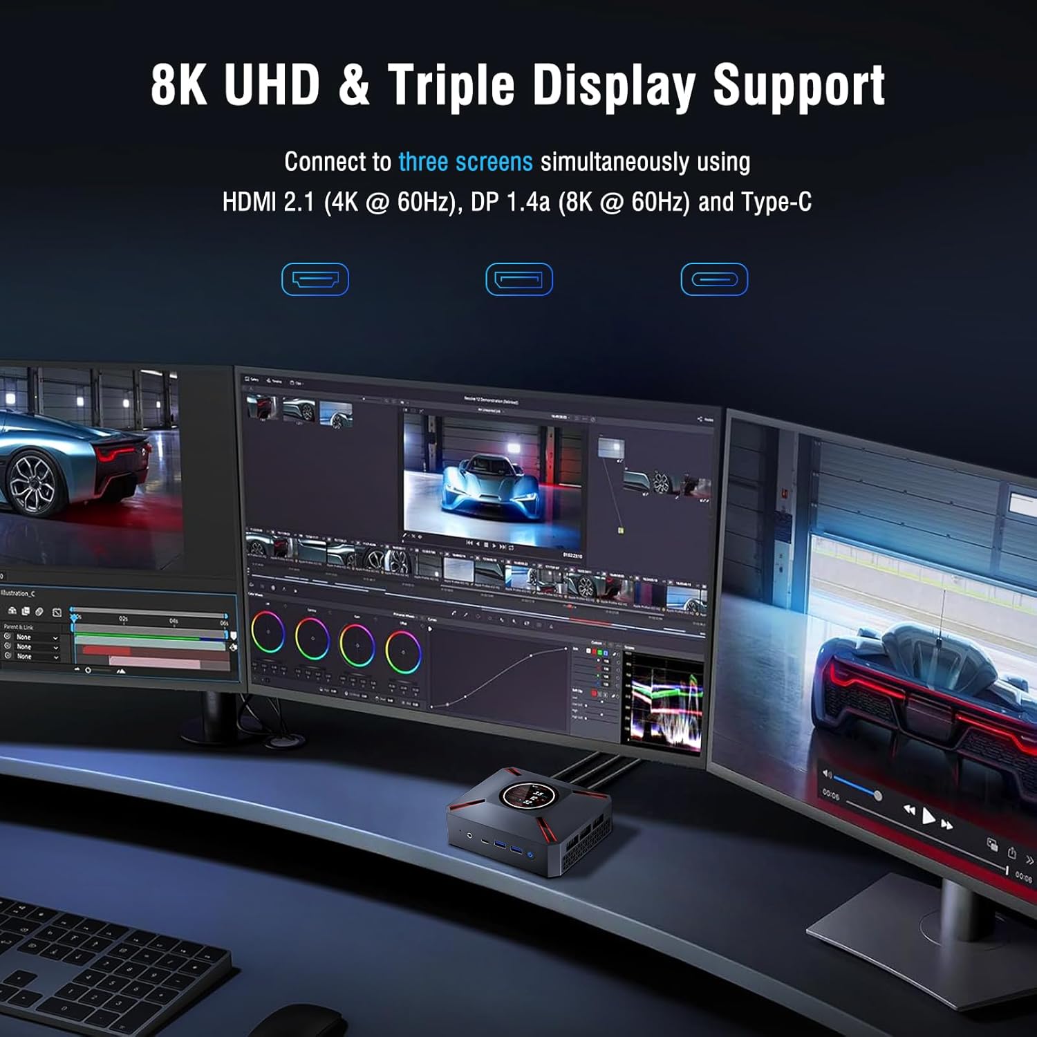 ✅Ultimate Connectivity & Stunning 8K Visuals Experience next-generation display capabilities with 1x HDMI 2.0 (4K@60Hz) and 1x DisplayPort 1.4 (8K@60Hz) – perfect for professional 8K video editing, immersive gaming, and high-resolution design work. plus USB-C/3.2/2.0 ports, WiFi 6, and BT5.2. Connect to monitors, VR devices, and peripherals effortlessly. Additionally, dual-band Wi-Fi 6 and Bluetooth 5.2 offer enhanced interference resistance and a more stable wireless signal