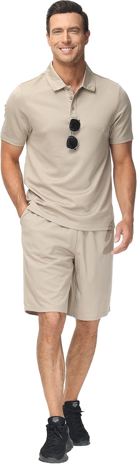 MoFiz Men’s Sweatsuits Mens Short Sets 2 Piece Outfits Polo Shirts/Shorts Summer Suit Casua Set Lightweight Tracksuit