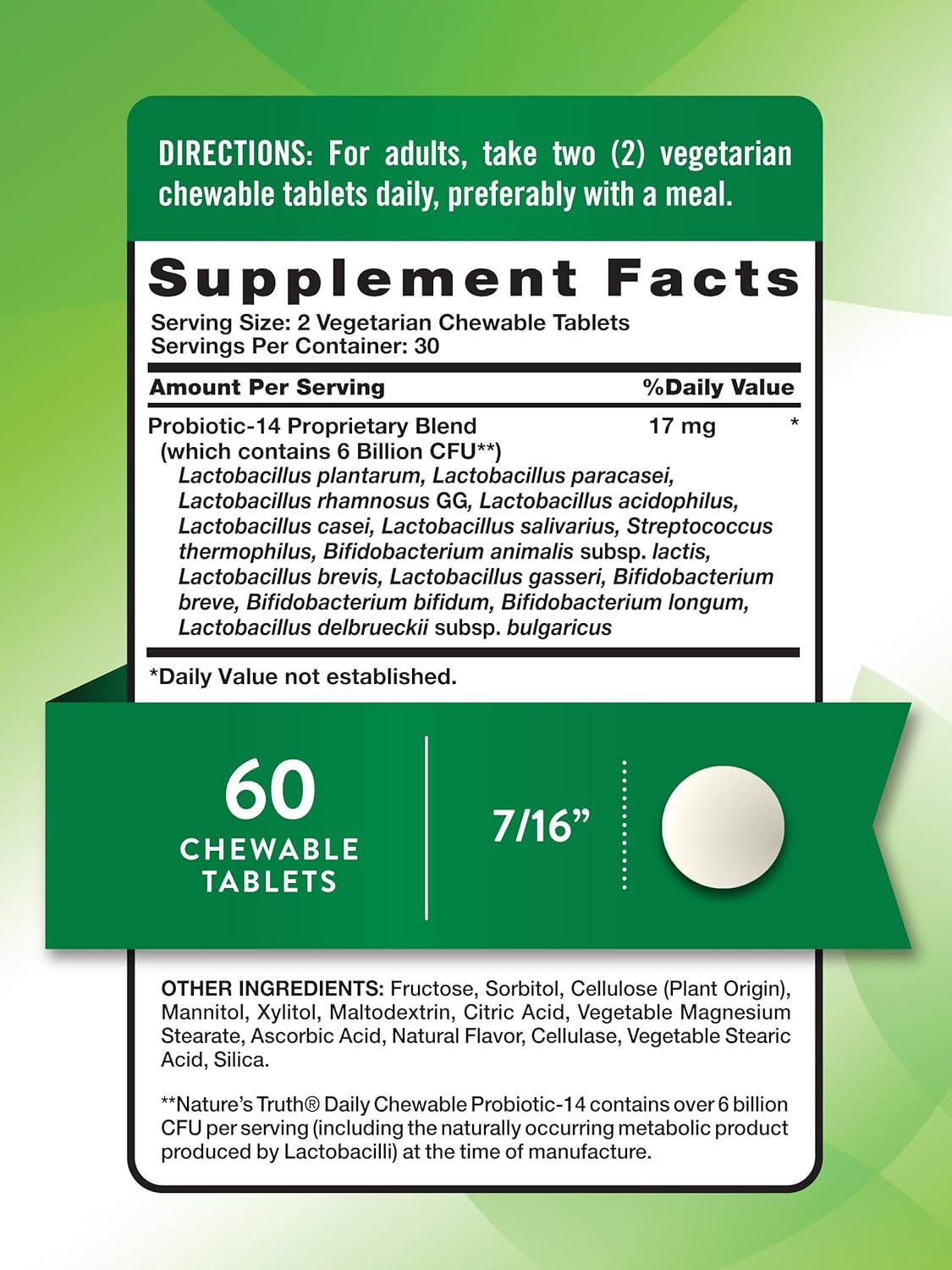 Nature’s Truth Probiotic Chewable for Men and Women | 6 Billion CFU | 60 Count | 14 Strains | Berry Flavor | Non-GMO & Gluten Free