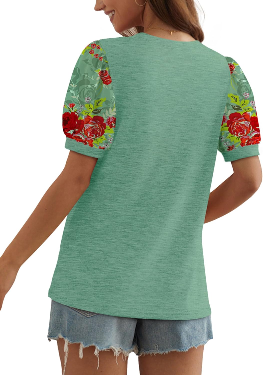 OFEEFAN Summer Tops for Women 2025 Crewneck Puff Sleeve Loose Fit Tshirts