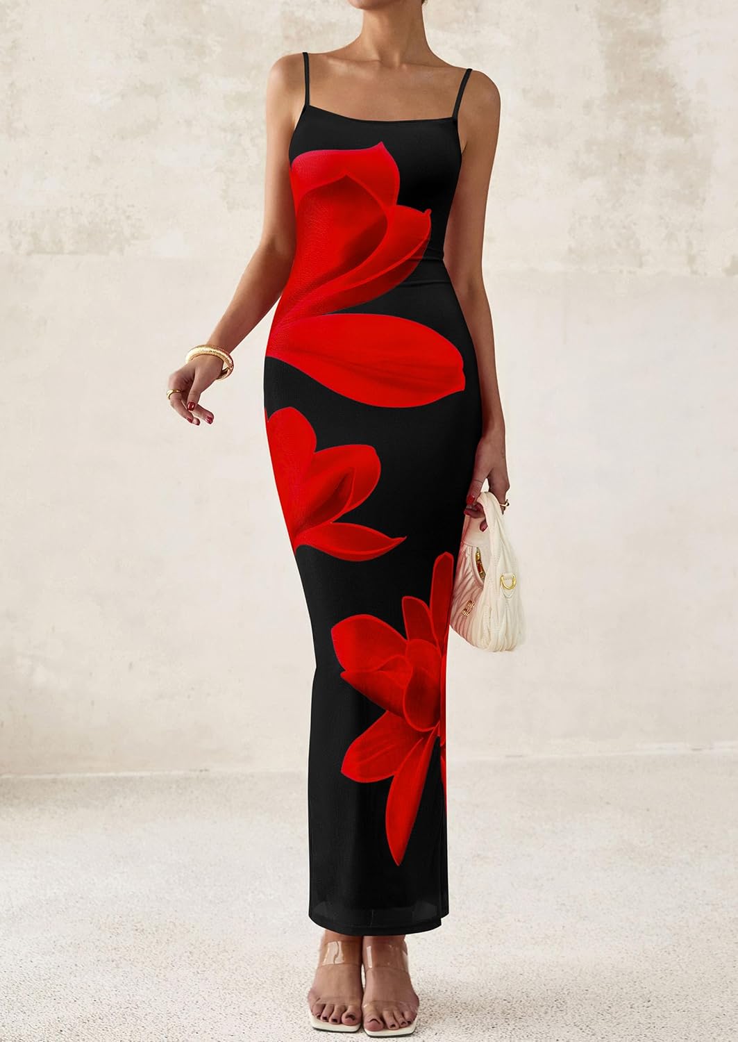 PRETTYGARDEN Women Elegant Sundress Spaghetti Strap Long Bodycon Dresses