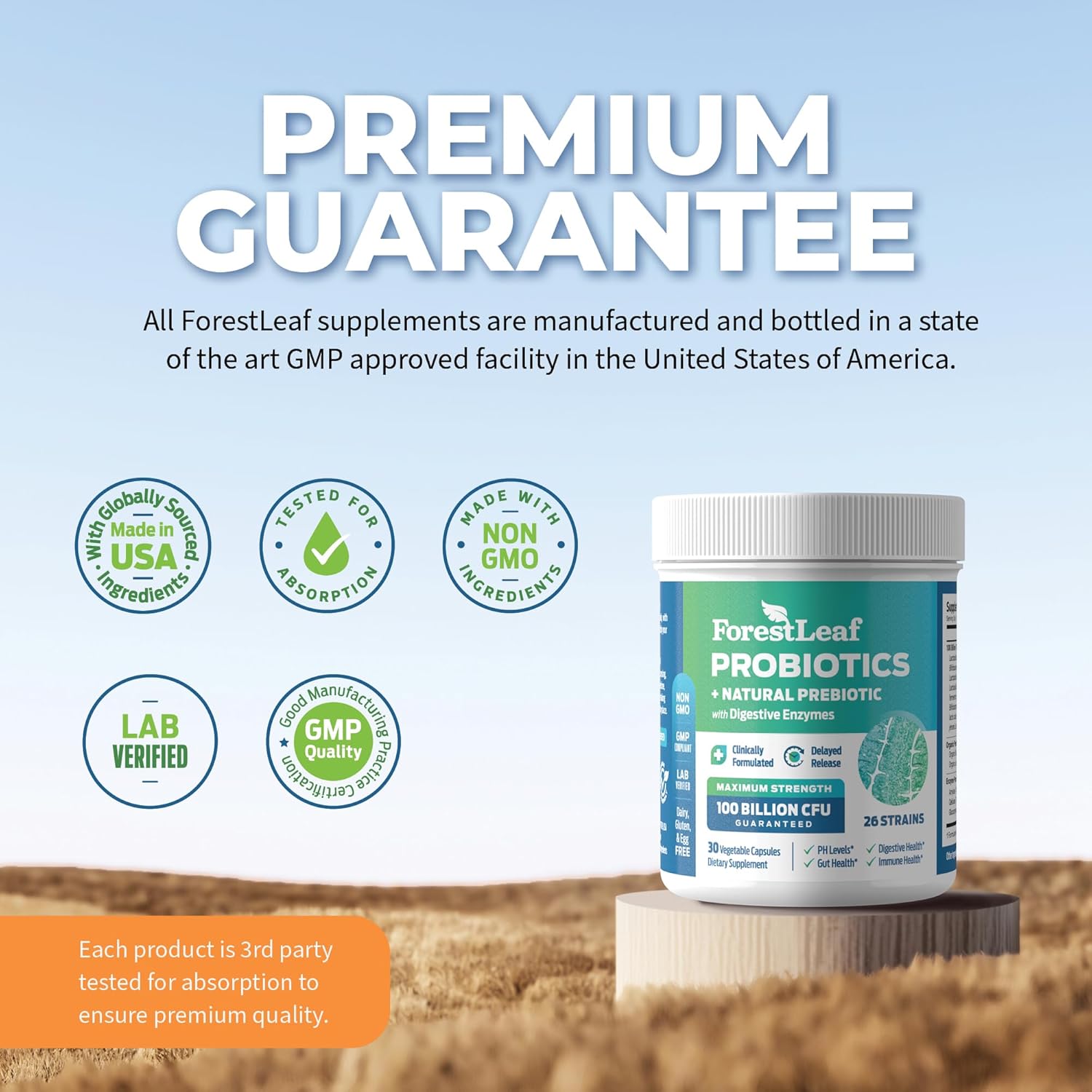 Pure, Lab-Tested, & GMP Compliant – Our ForestLeaf vegan probiotics formula is made in a GMP-certified facility, ensuring the highest purity and quality. These probiotics and prebiotics for digestive health are non-GMO, gluten-free, and third-party lab tested to ensure potency and safety for daily use by both men and women