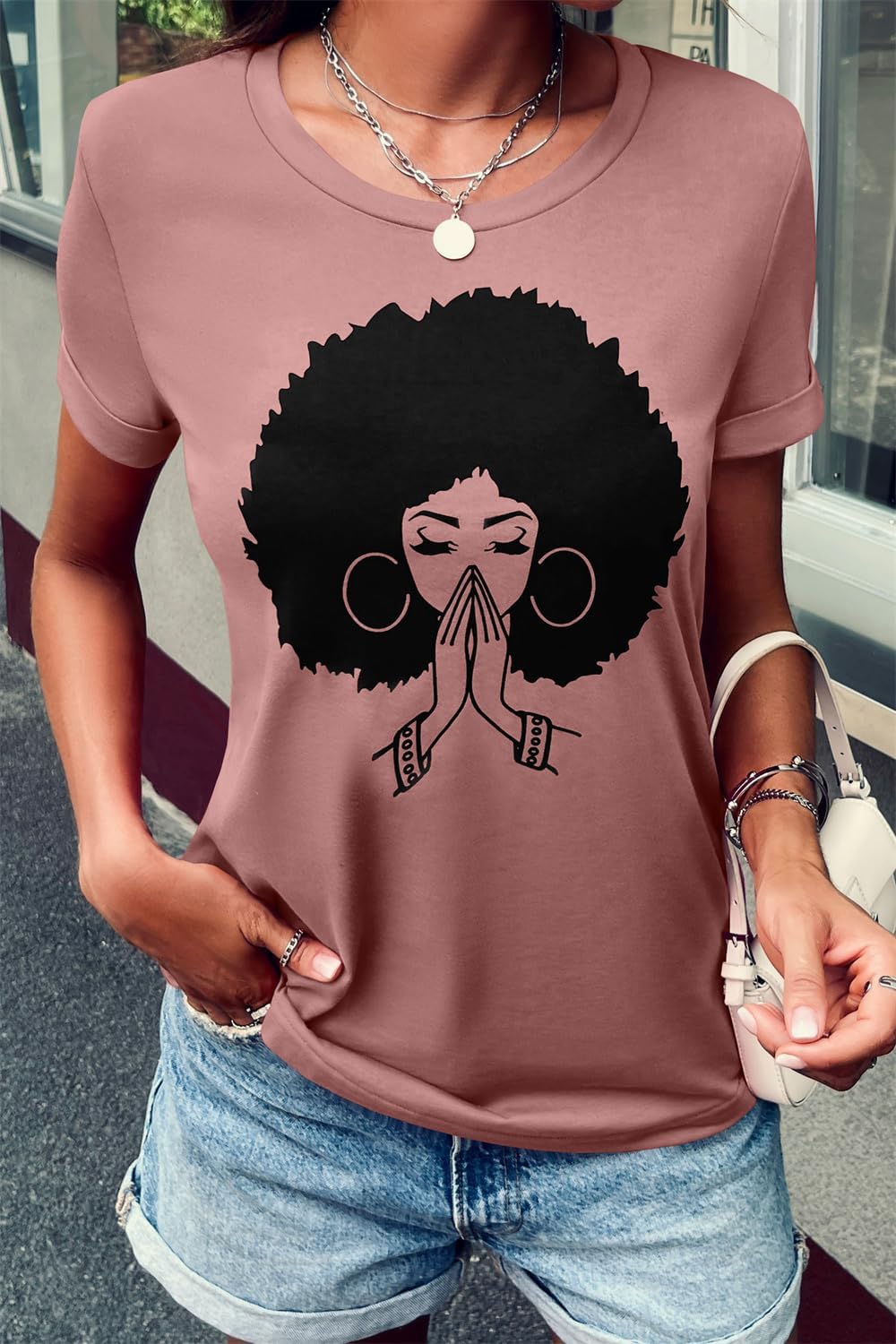 Qianxitang Women’s Funny Graphic Tees Round Neck Short Sleeve Letter Print Black Girl T Shirt Tops