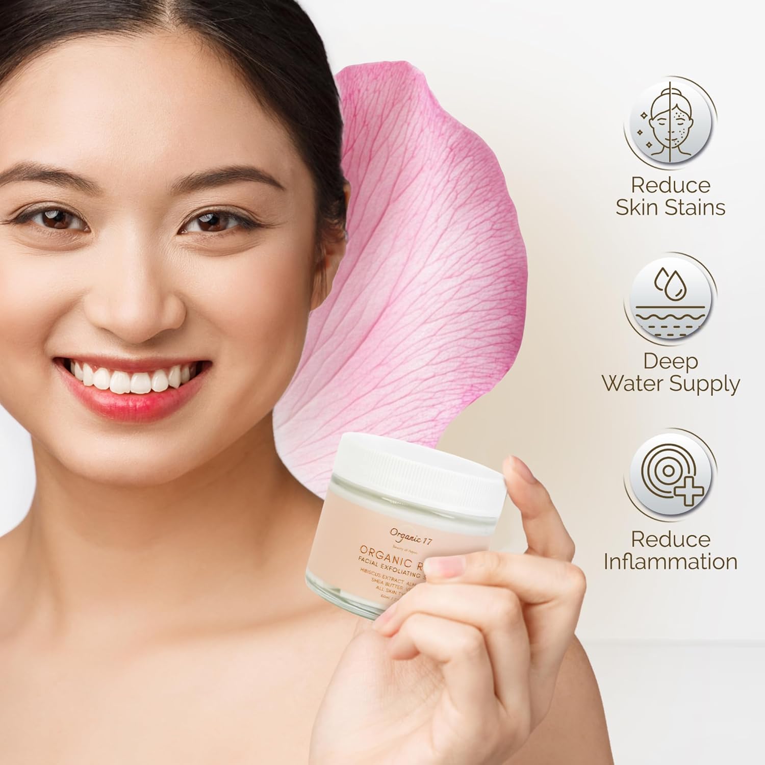 Elevate your skincare with O1Organic17 Rose Scrub. Enjoy gentle exfoliation that smooths and refines your skin, while increased blood circulation revives your complexion for a healthy, rosy glow. Crafted organically, it’s the perfect scrub for radiant, refreshed skin.