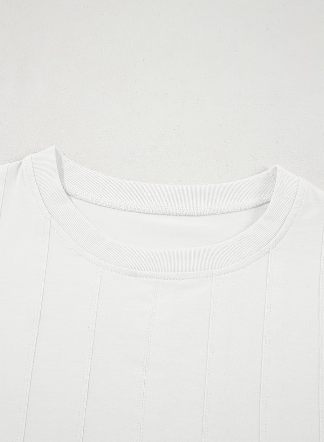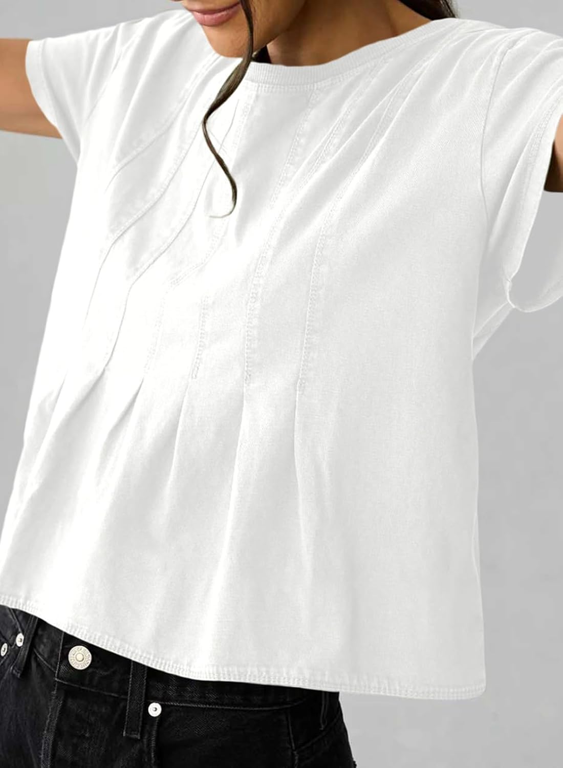 Sidefeel Womens Short Sleeve Casual Basic T Shirts Summer Round Neck Pleated Tee Tops Blouses
