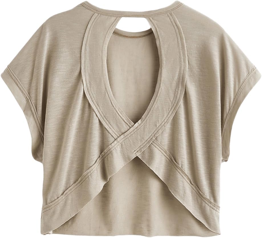 Be the first to review “SOLY HUX 2024 Open Back Tops for Women Criss Cross Cut Out Tee Backless Casual Short Sleeve Round Neck T Shirt”