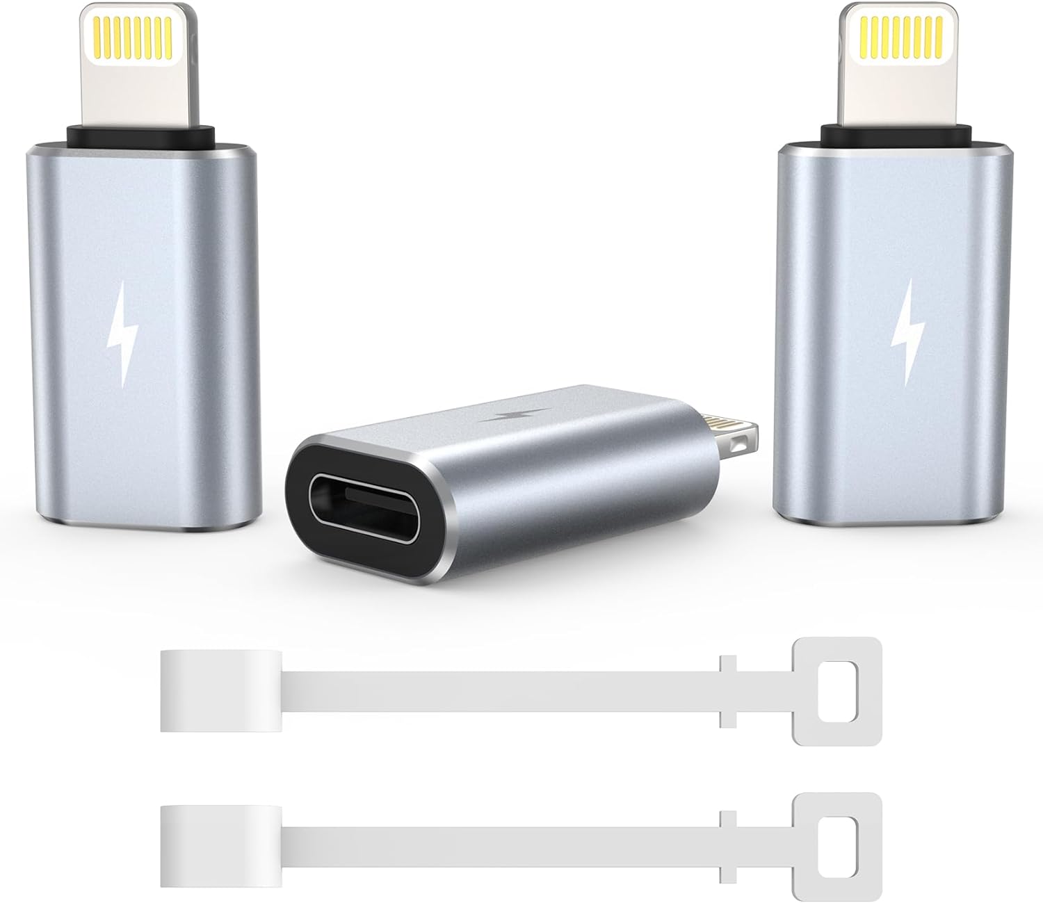 TechMatte Female USB C to Male Lightning Adapter 3 Pack 2.2A Charging Data Transfer, Compatible with iPhone 14, 13, 12, 11 Xs SE iPad iPod AirPods, Not for Audio Headphones/OTG Android Anti-Lost, Grey