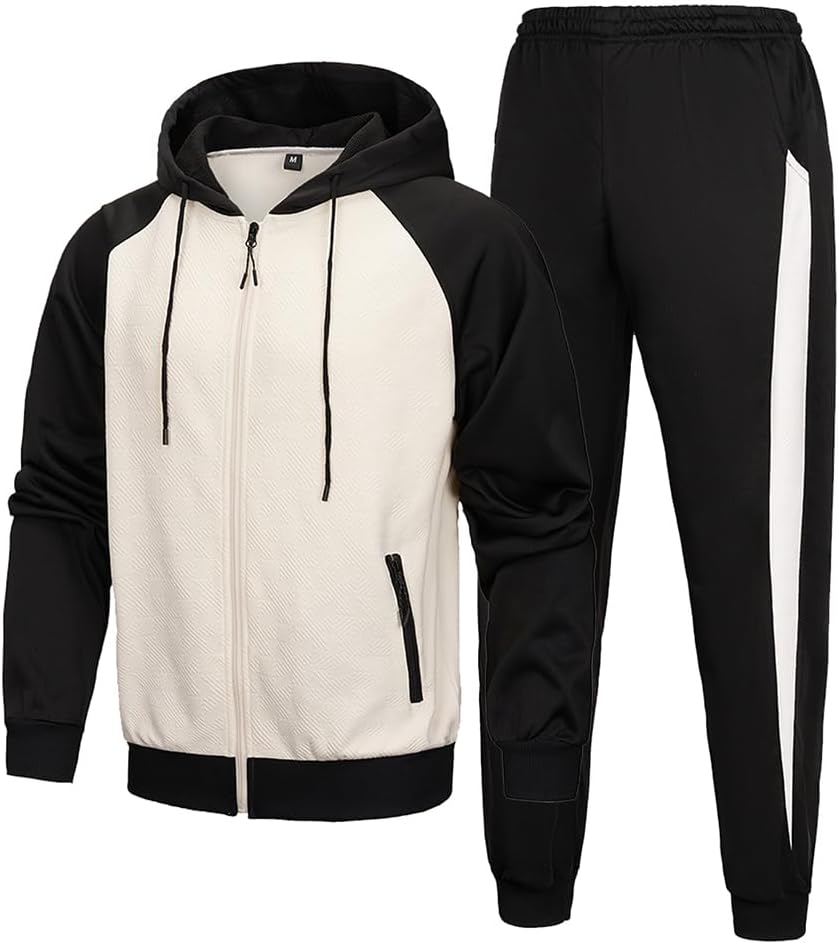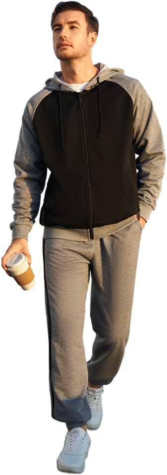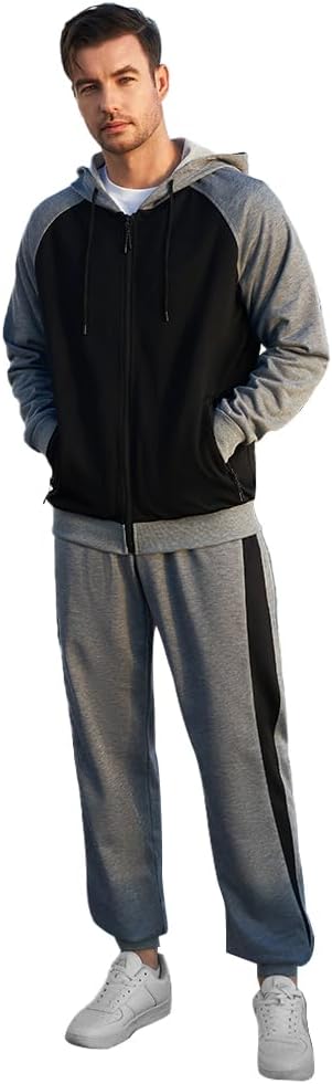 TOLOER Men’s Hooded 2 Pieces Athletic Tracksuits Full Zip Long Sleeve Drawstring Jogging Sweatsuit Casual Running Sportsuits
