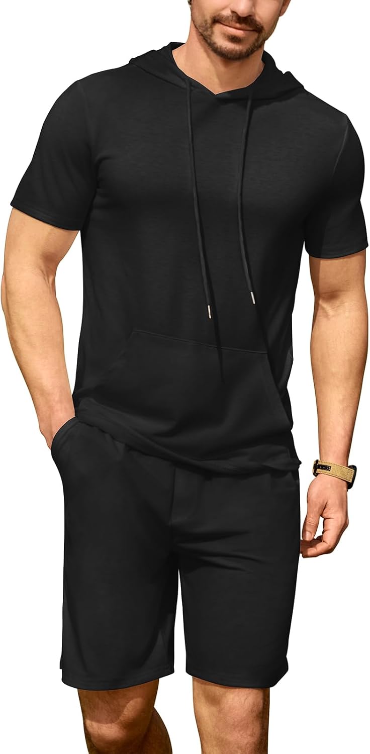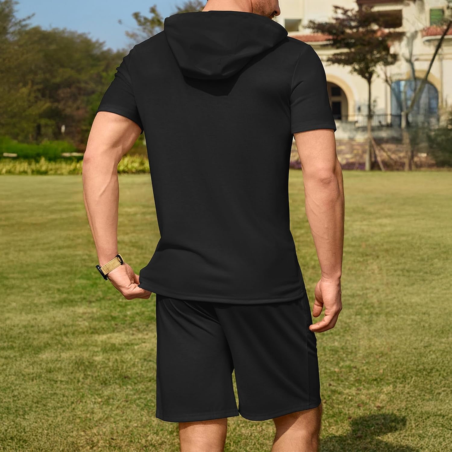 Uni Clau Men’s Tracksuit Short Sets 2 Pieces Summer Outfit Casual Short Sleeve Hoodie and Shorts Set
