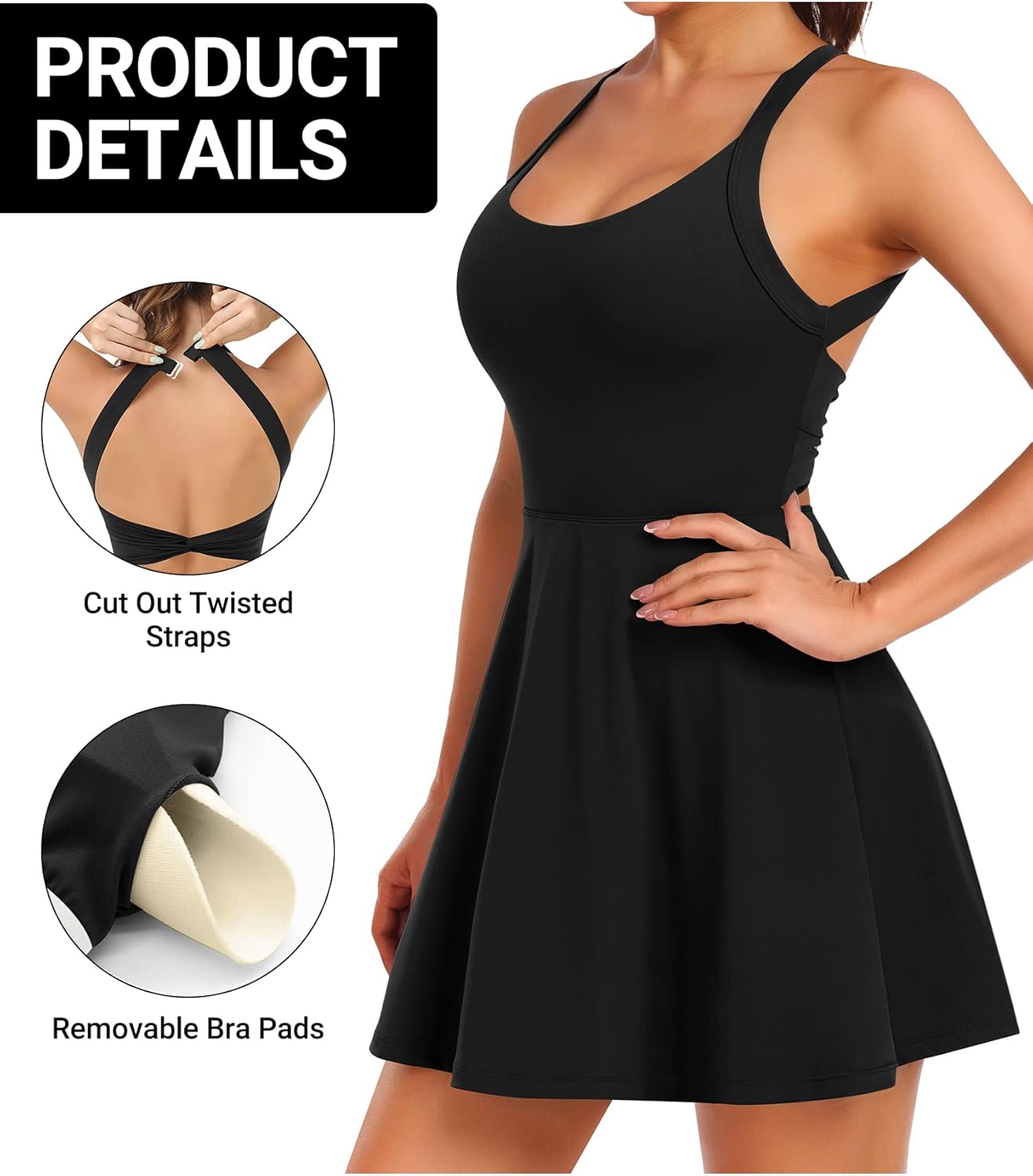 Women Tennis Golf Dress with Built-in Shorts and Bra-Workout Athletic Activewear for Exercise