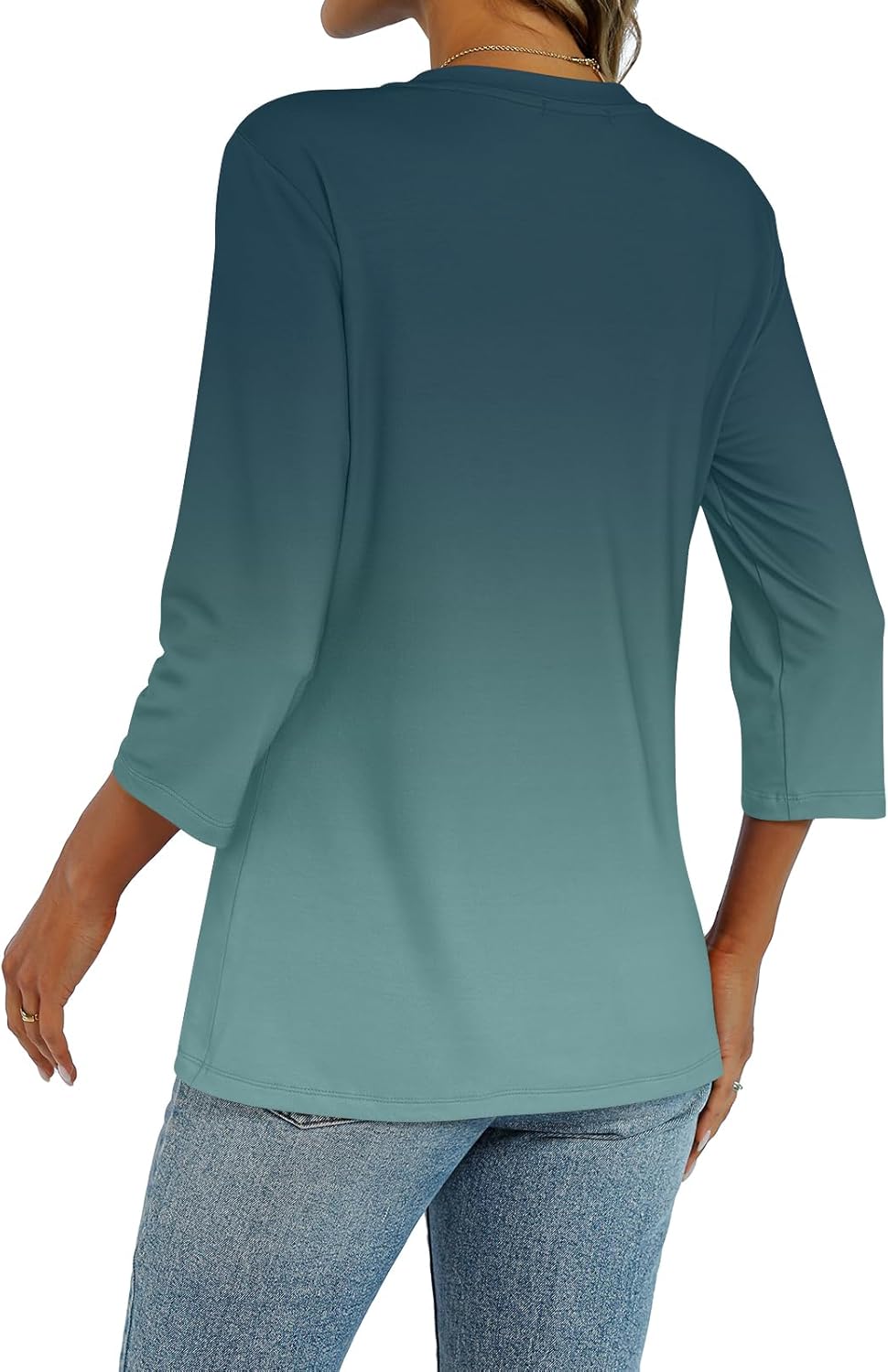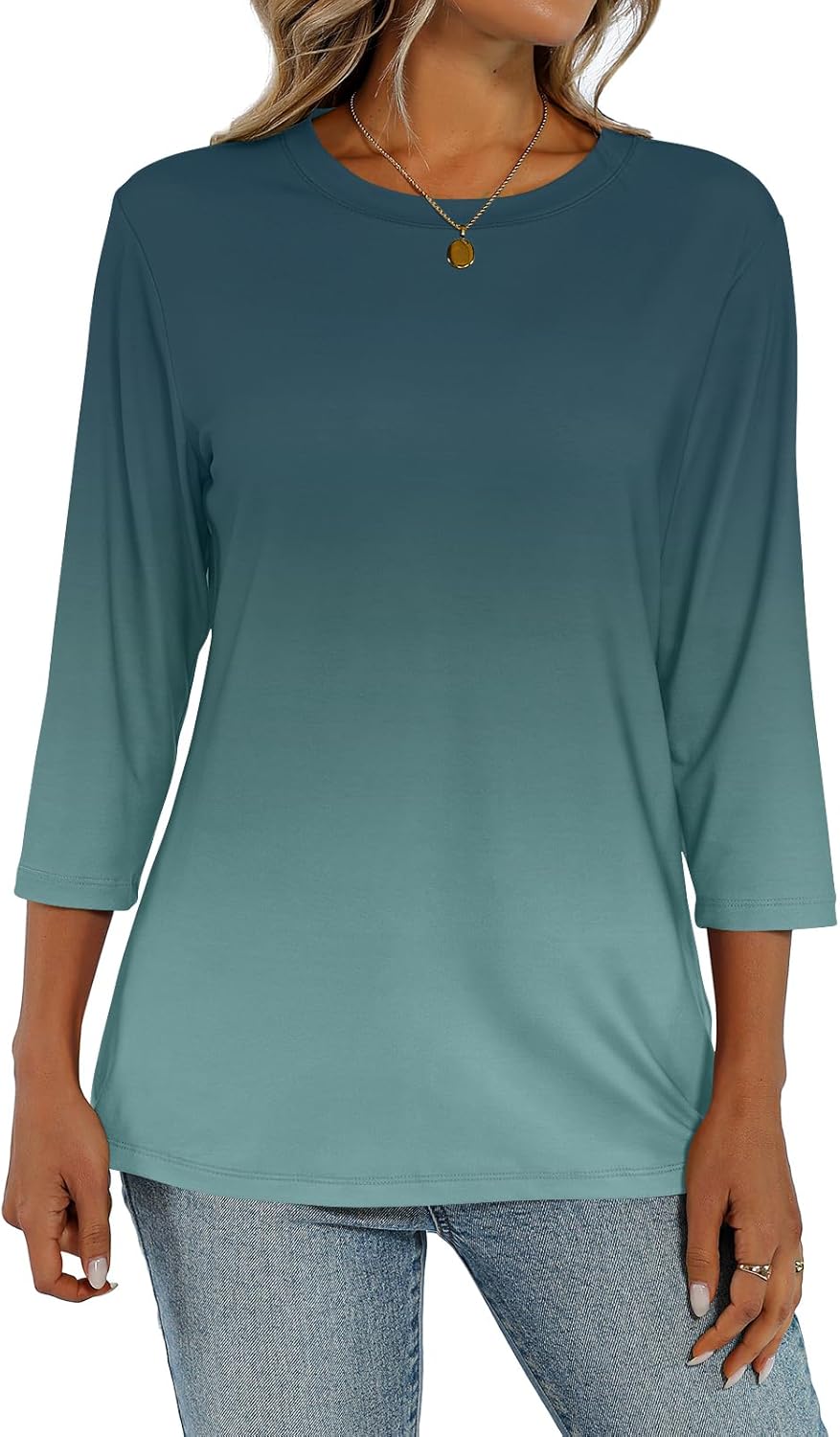 Womens 3/4 Sleeve Tops Crewneck Summer Solid Casual Tee Shirts Floral Printed Blouse Loose Dressy Tunic