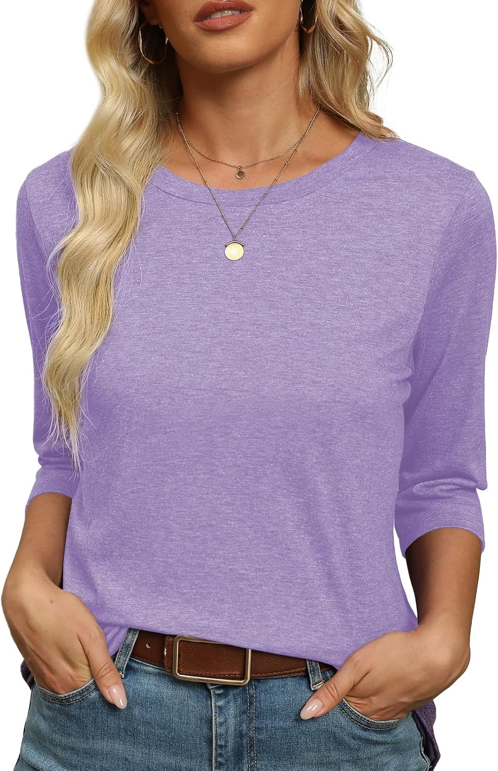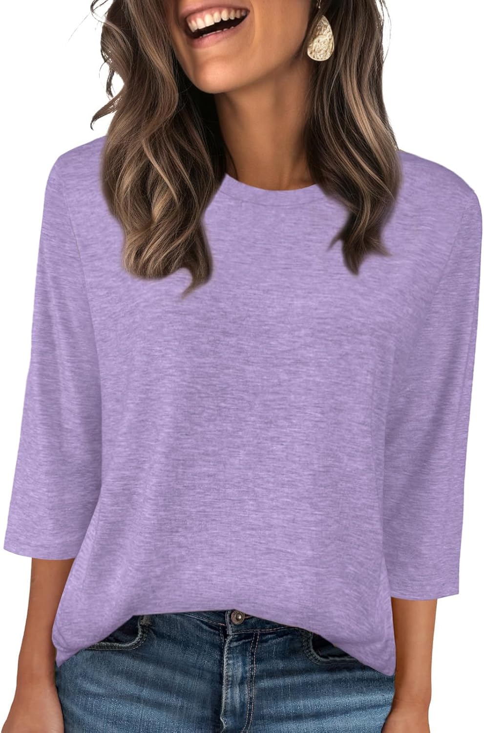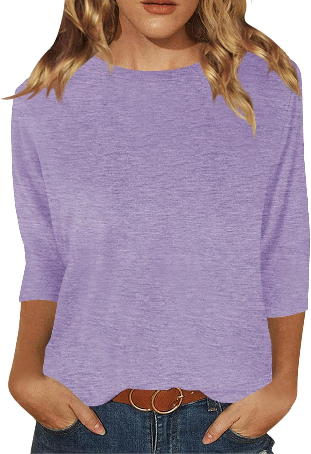 Women’s Summer Tops 3/4 Sleeve Round Neck Tshirts Cute Tunic Loose Fit Pullover Blouses & Basic Tees